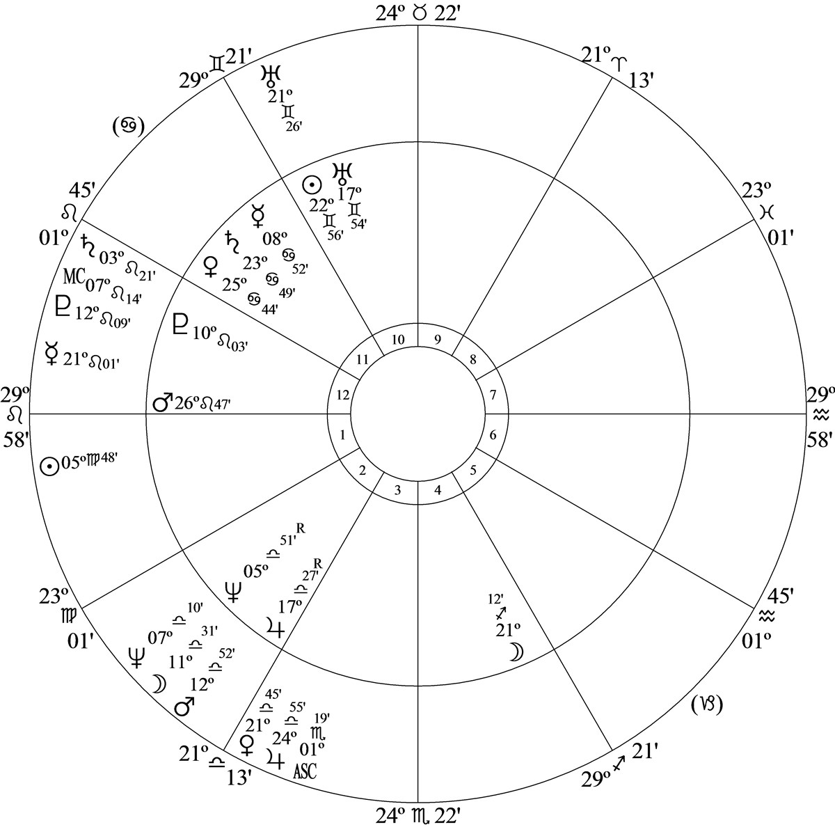 Progressed Mars at 12 Libra 52 – the chief ruler of house 12 – in house 2 was sextile progressed Pluto at 12 Leo 08 in house 12.