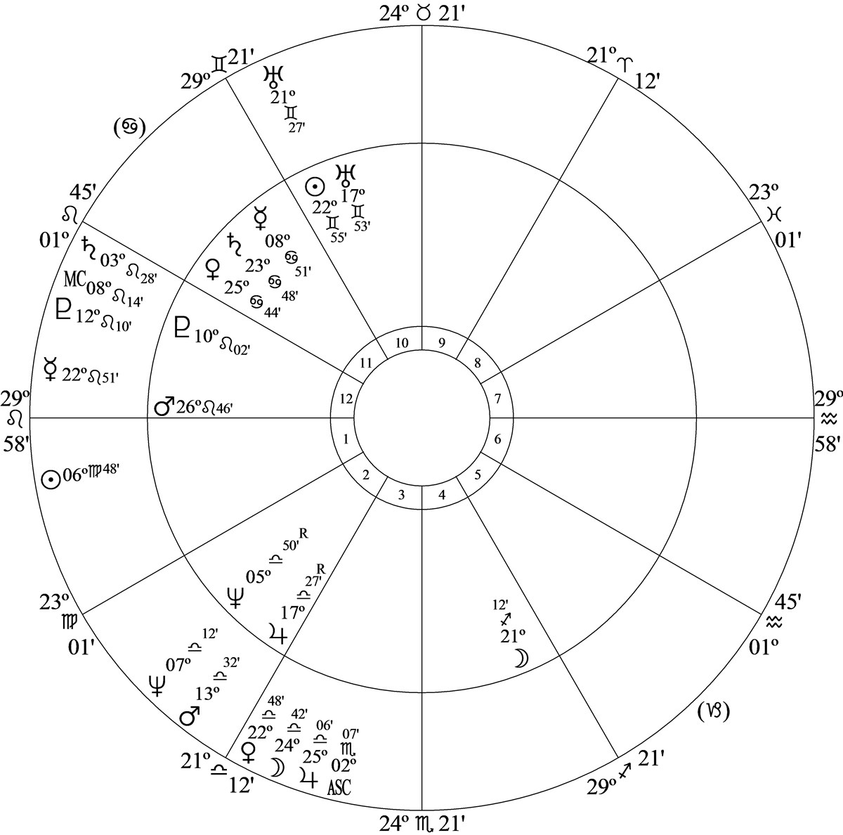 Progressed Midheaven at 8 Leo 14 in house 12 was semisquare birth chart Sun – the cusp ruler of house 12 – at 22 Gemini 55 in house 10.