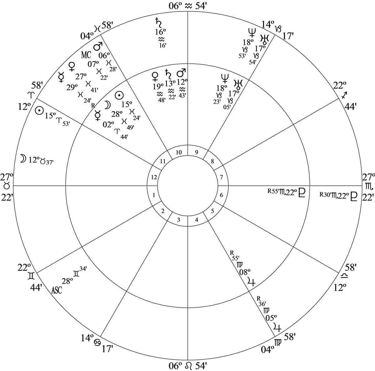 Progressed Moon at 12 Taurus 37 in house 12 was square birth chart Saturn at 13 Aquarius 22 and birth chart Mars at 12 Aquarius 43 in house 10.