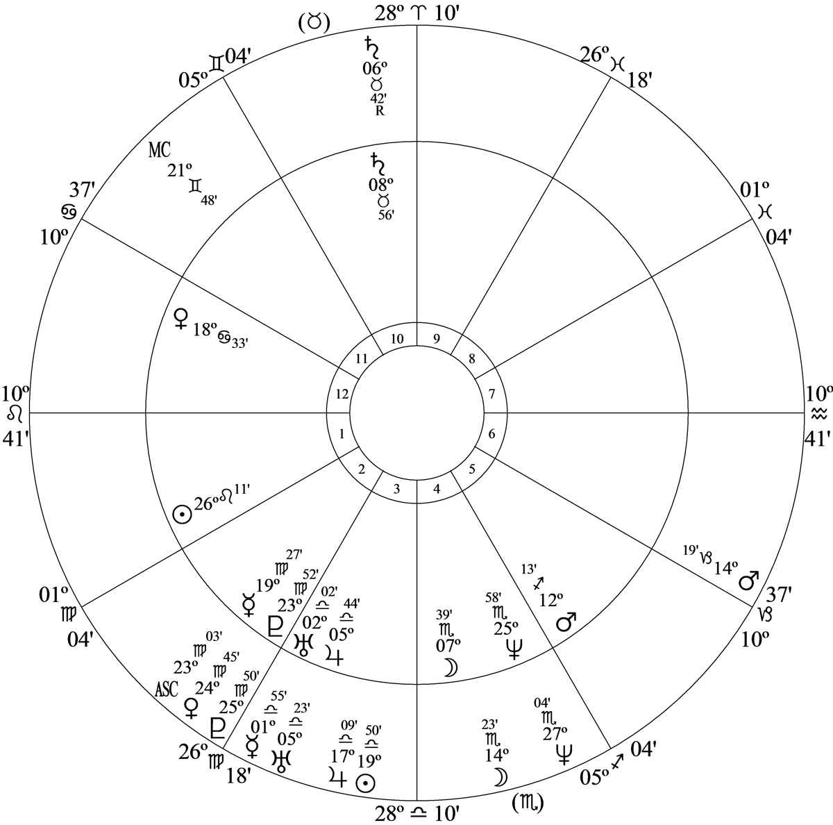 Dominant planet is Moon – his domestic urge, mentality, feelings and mental health – and it’s high in discord: worst quality is inconstancy; best is adaptability.