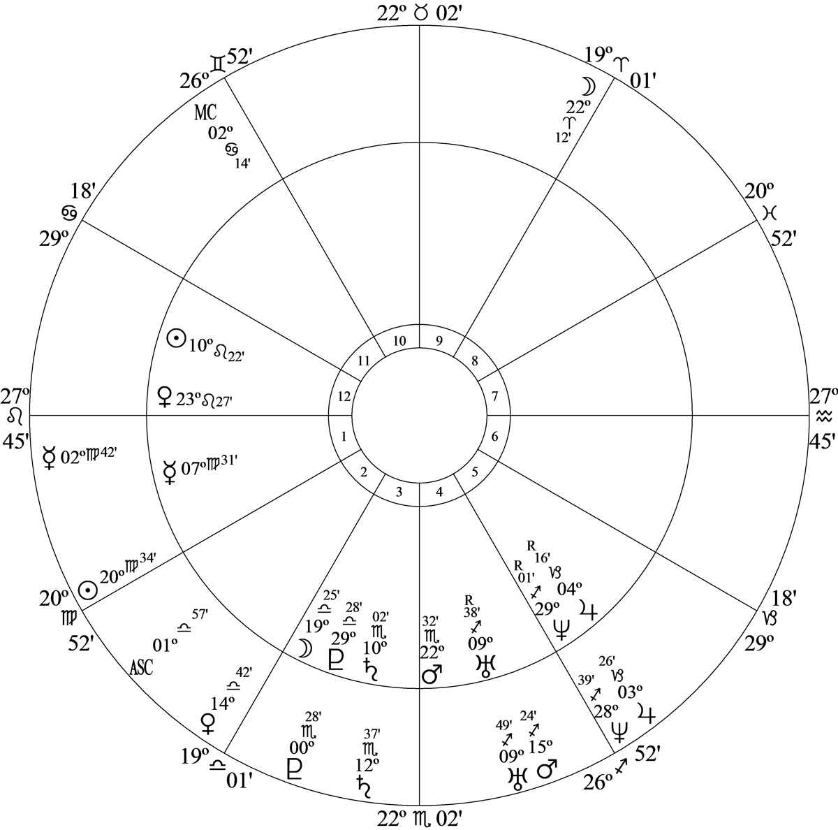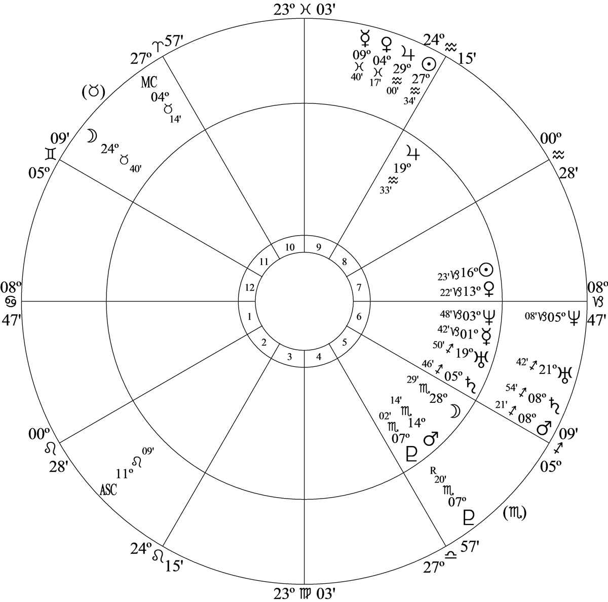 Progressed Mars at 15 Sagittarius 24 – the cusp ruler of house 9 in house 4 – was semisquare (friction) progressed Pluto (planet of coercion, threats and malevolence) at 00 Scorpio 28 in house 3.