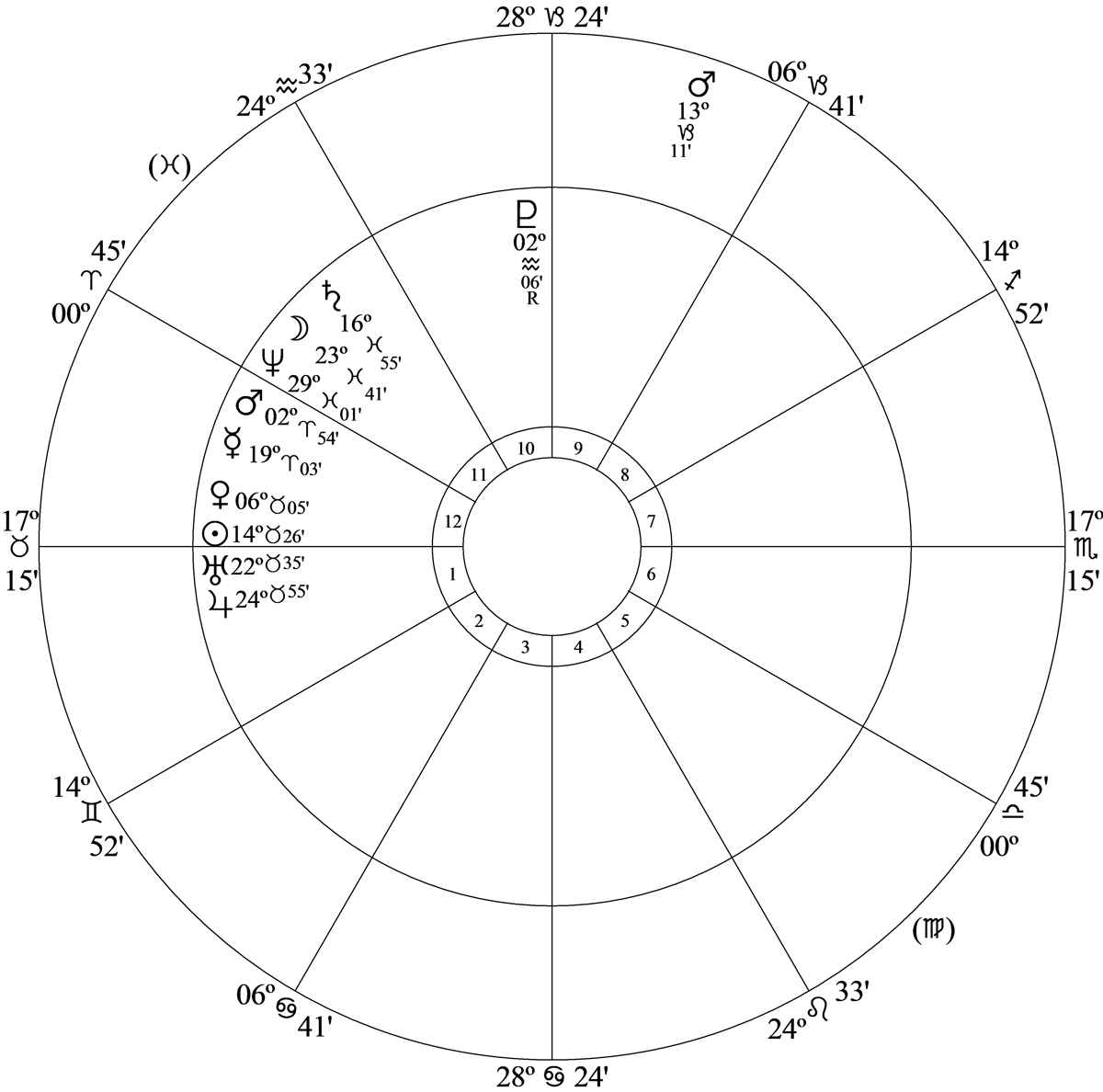 Chart data is July 4, 1776 at 12.14am LMT, Philadelphia (74W08, 39N57)
