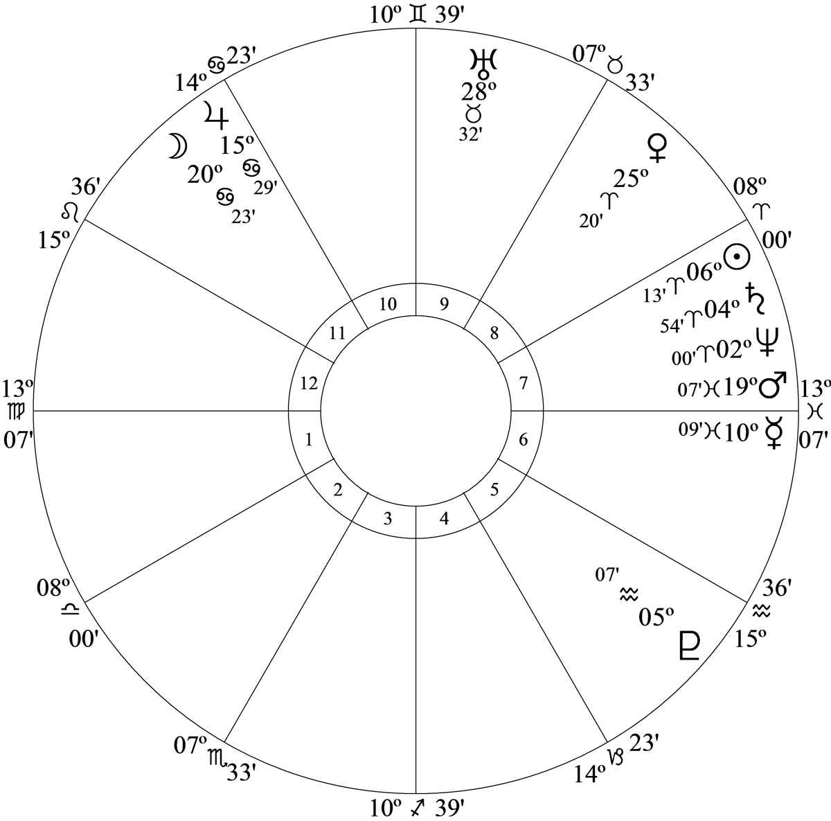 Chart data is July 4, 1776 at 12.14am LMT, Philadelphia (74W08, 39N57)