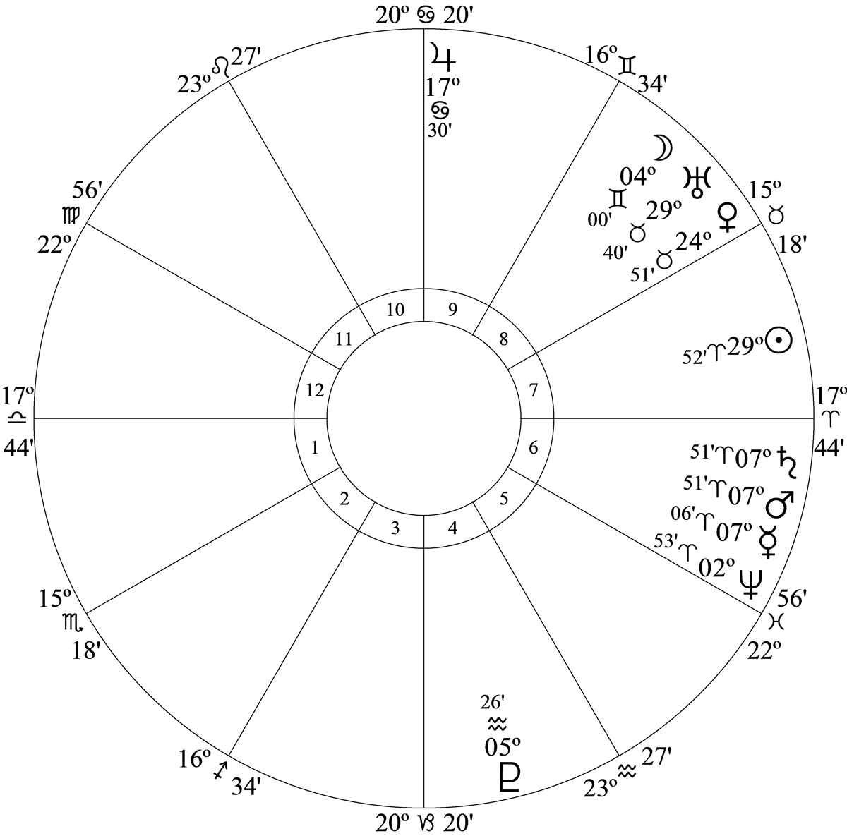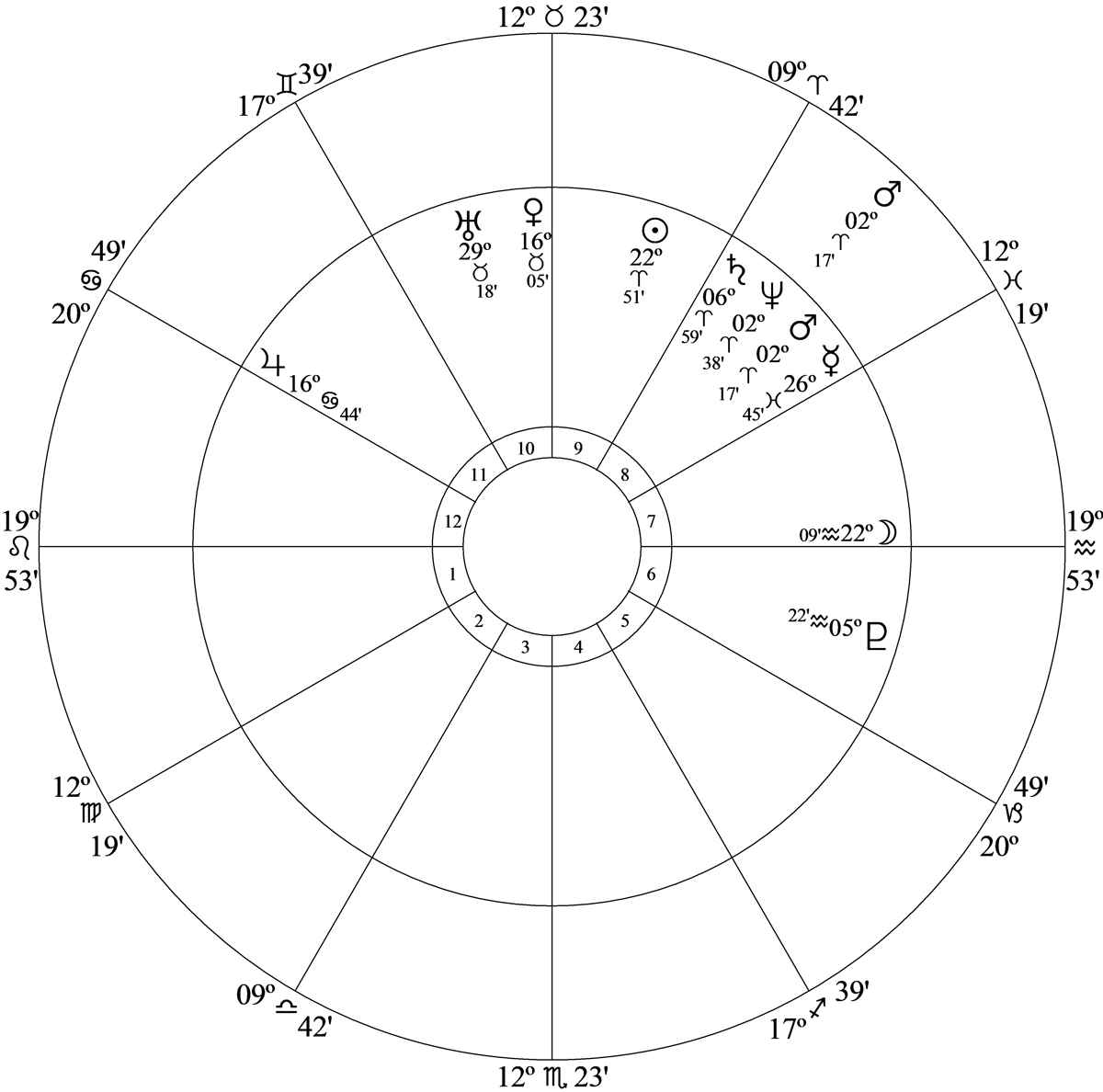 Chart data is July 4, 1776 at 12.14am LMT, Philadelphia (74W08, 39N57)