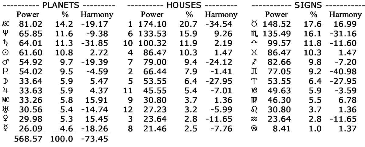 His chart's astrodyne report
