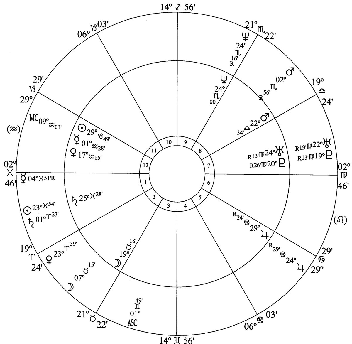 Saturn opposition Uranus and Pluto in her chart marks for a very painful mental conflict involving her (Saturn is in house 1) and her husband (Uranus and Pluto are in house 7); but the Sun in house 12 (her secret life), Jupiter in house 5 (her children) and Neptune in house 9 (her religion) conciliate the high discord house 1-house 7 mental conflict allowing her to escape the psychological pain and discomfort that’s triggered by her stressful marital relations.