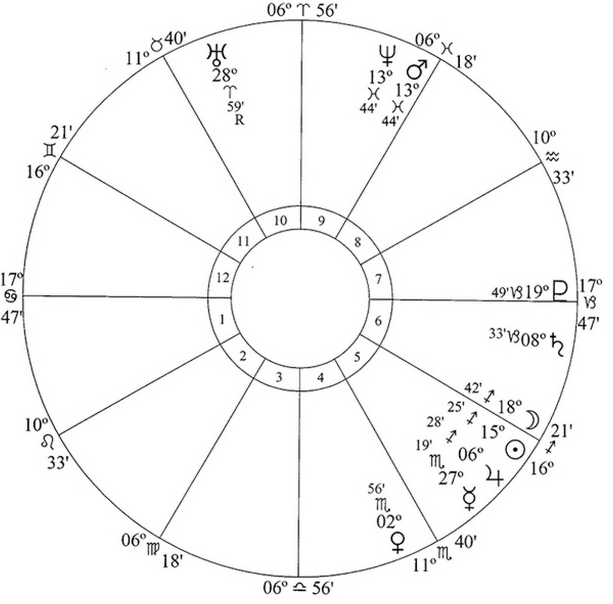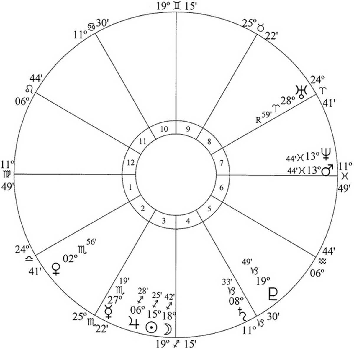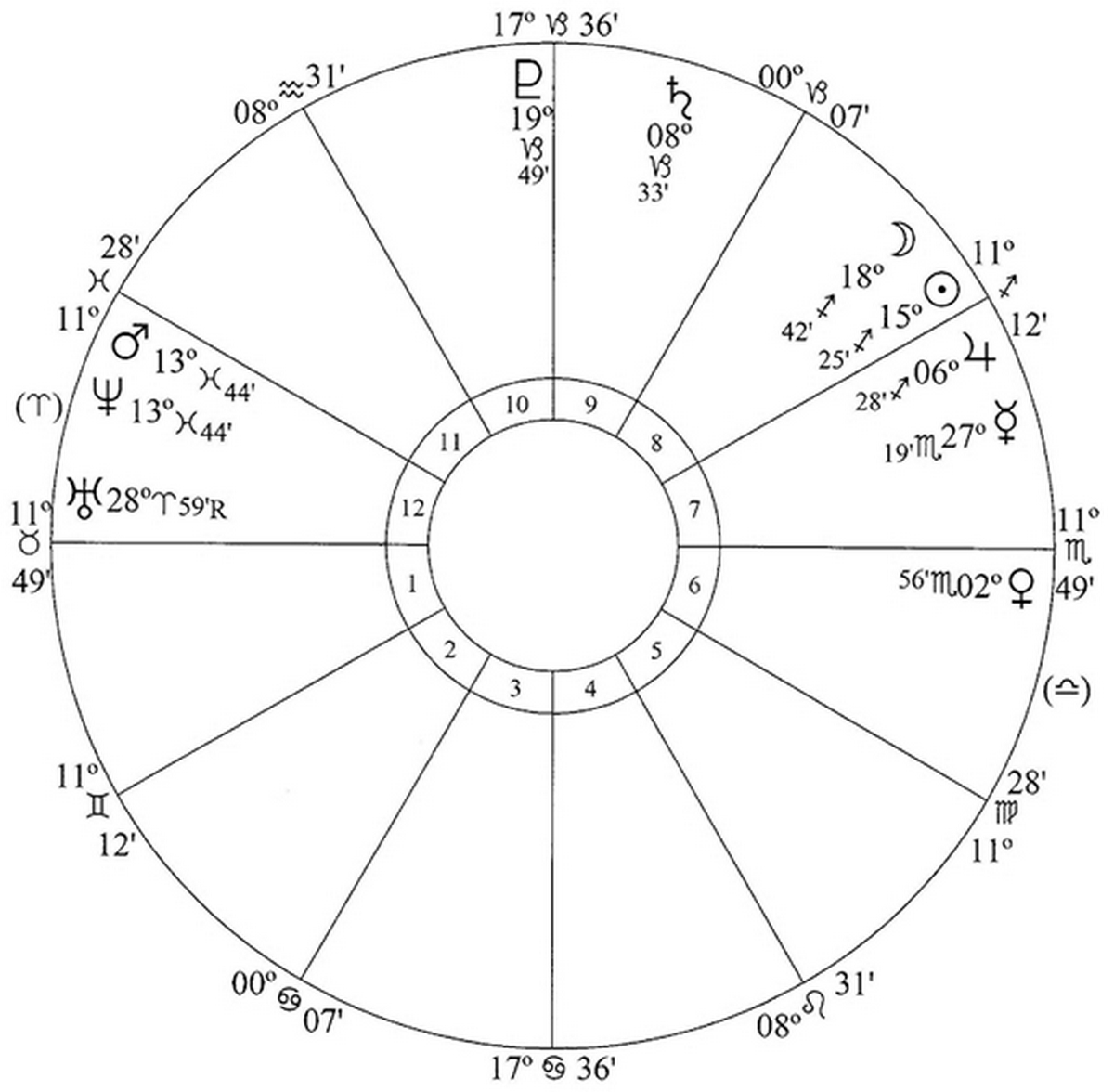 The Sun, Moon and Jupiter are in house 3 (transportation, roads, railways, communications, the press and relations with neighboring countries).