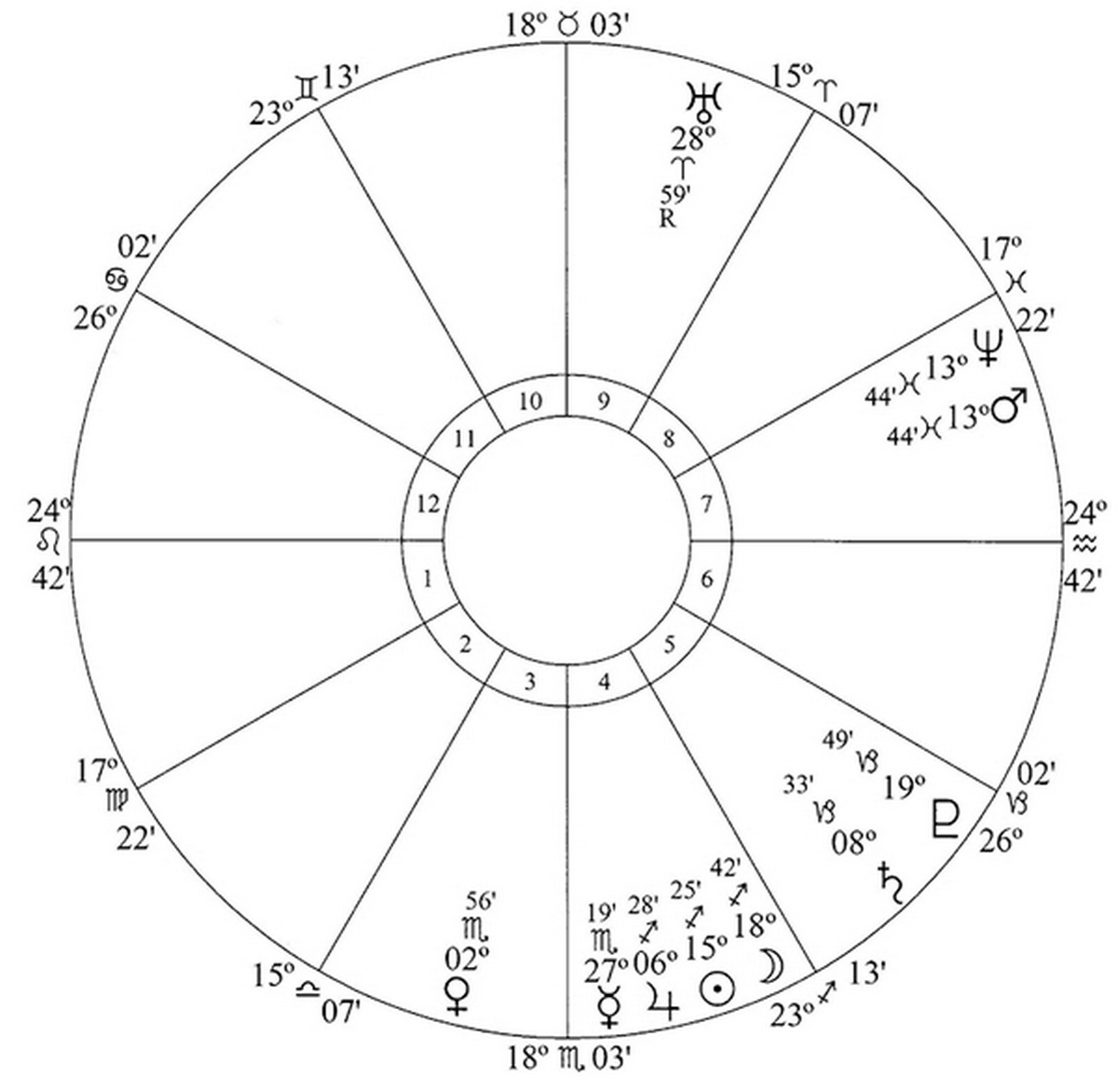 The Mars-Neptune conjunction is in house 12 (secrets, secret – behind the scenes – activity, secret enemies, spies, crime, detectives, MI5, MI6, prisons, hospitals and charities).