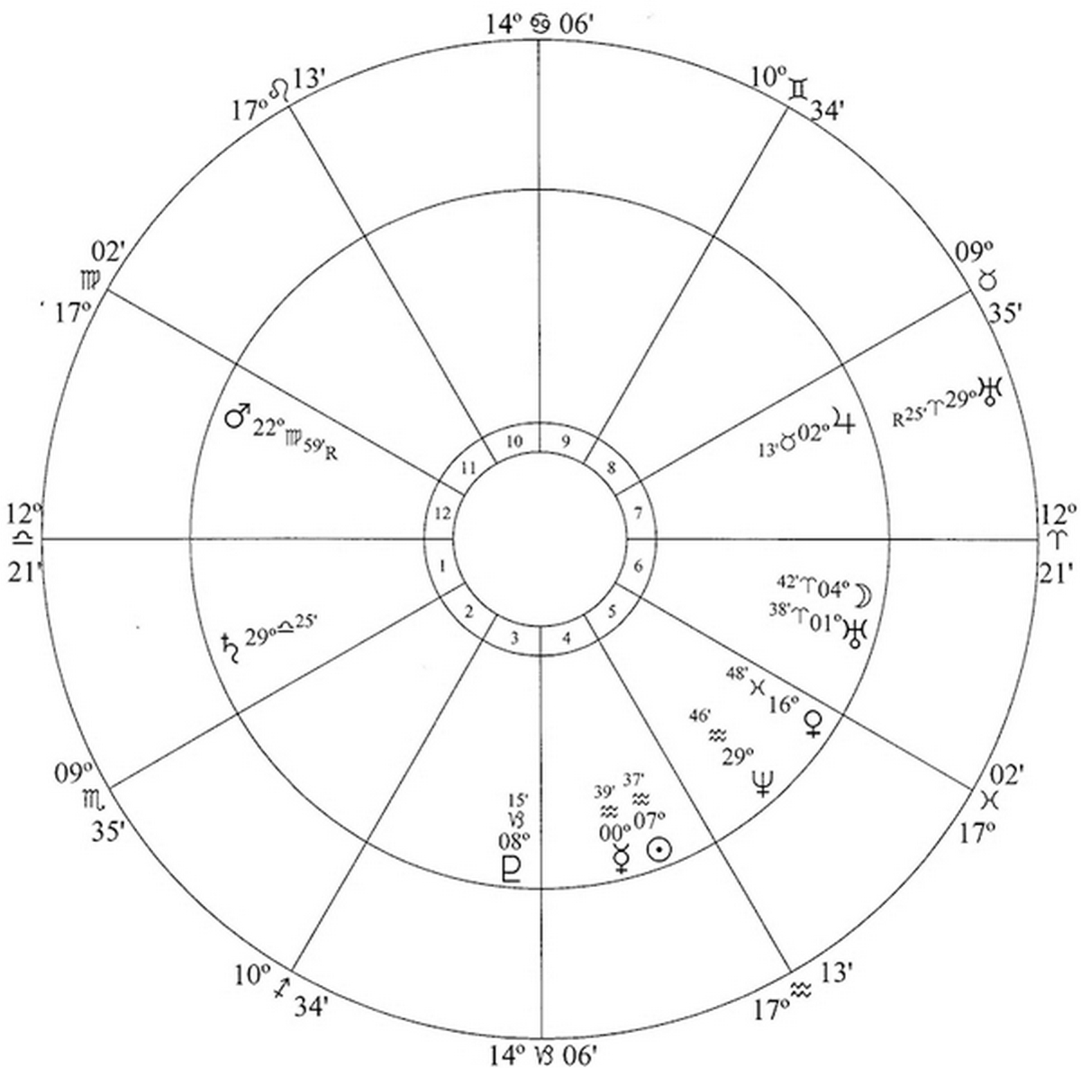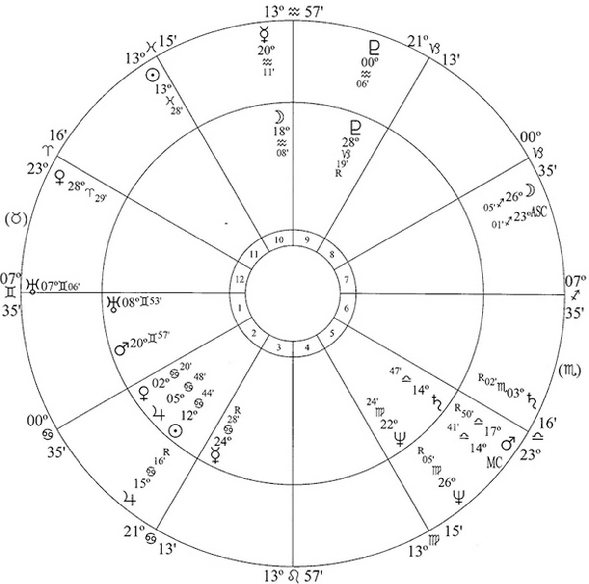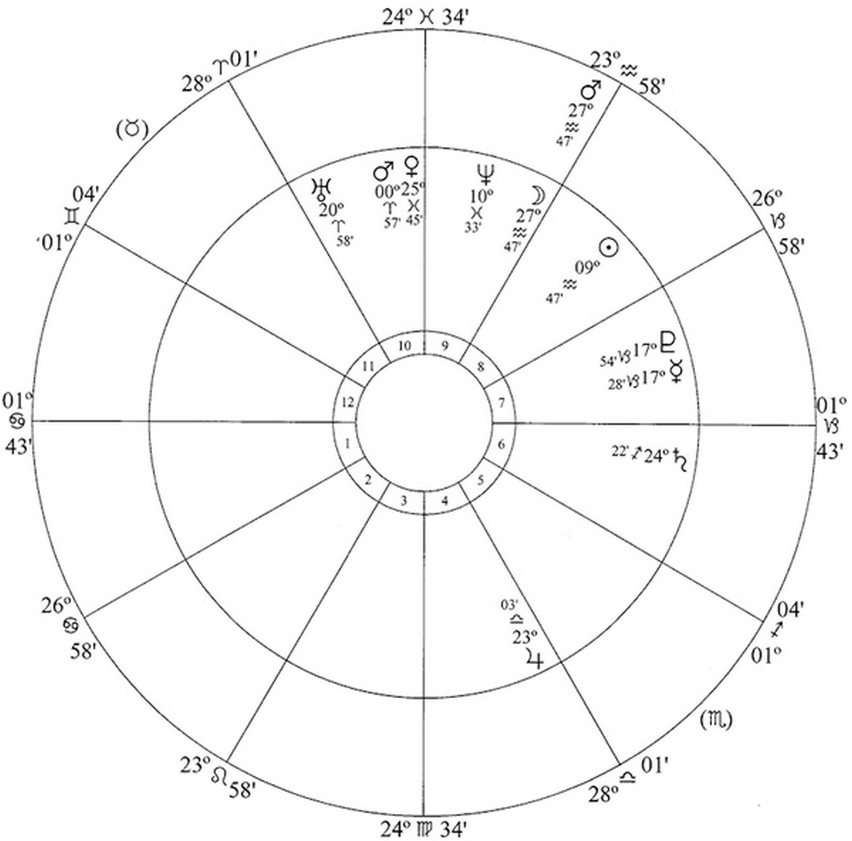 The Sun-Moon conjunction is trine Neptune and sextile Pluto.