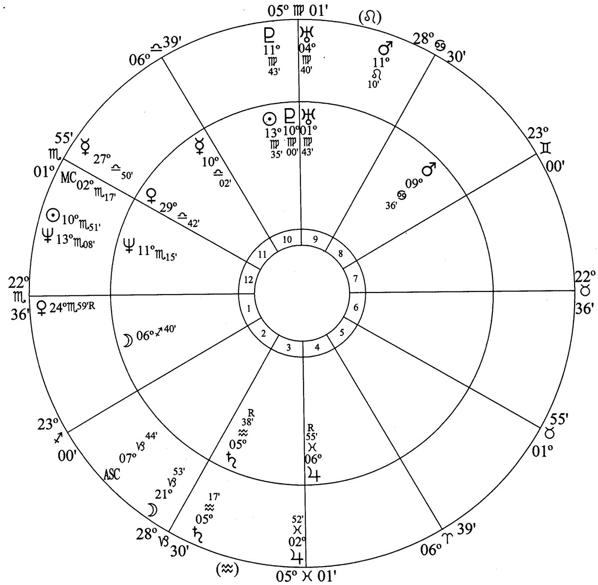 The asthma – a nervous (Mercury) disorder – he cited as an underlying health concern is mapped by Mercury at 10 Libra 02 square Mars at 9 Cancer 36 and Moon in house 1 at 6 Sagittarius 40 – square Pluto – at 10 Virgo 00 – planet of sensitivity (similar to Neptune) and co-ruler of house 1 (his physical health).