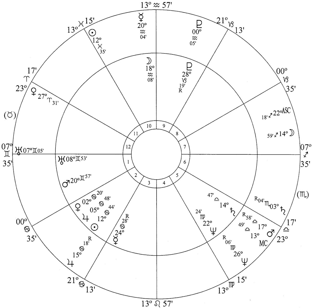 This gives 7 Gemini 35 on the ascendant.