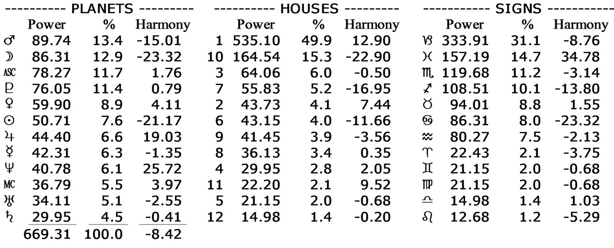House 1 (the people and their welfare) dominates with 8 planets there.