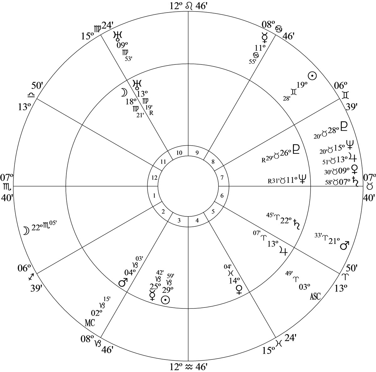 Progressed ascendant at 3 Aries 49 in house 5 (children) is square birth chart Mars in house 2 (finances); and progressed Mercury at 24N50 and 11 Cancer 55 – the cusp ruler of house 8 (death) in house 9 – is parallel birth chart Mars at 23S58 and semisquare birth chart Pluto at 26 Taurus 29R.