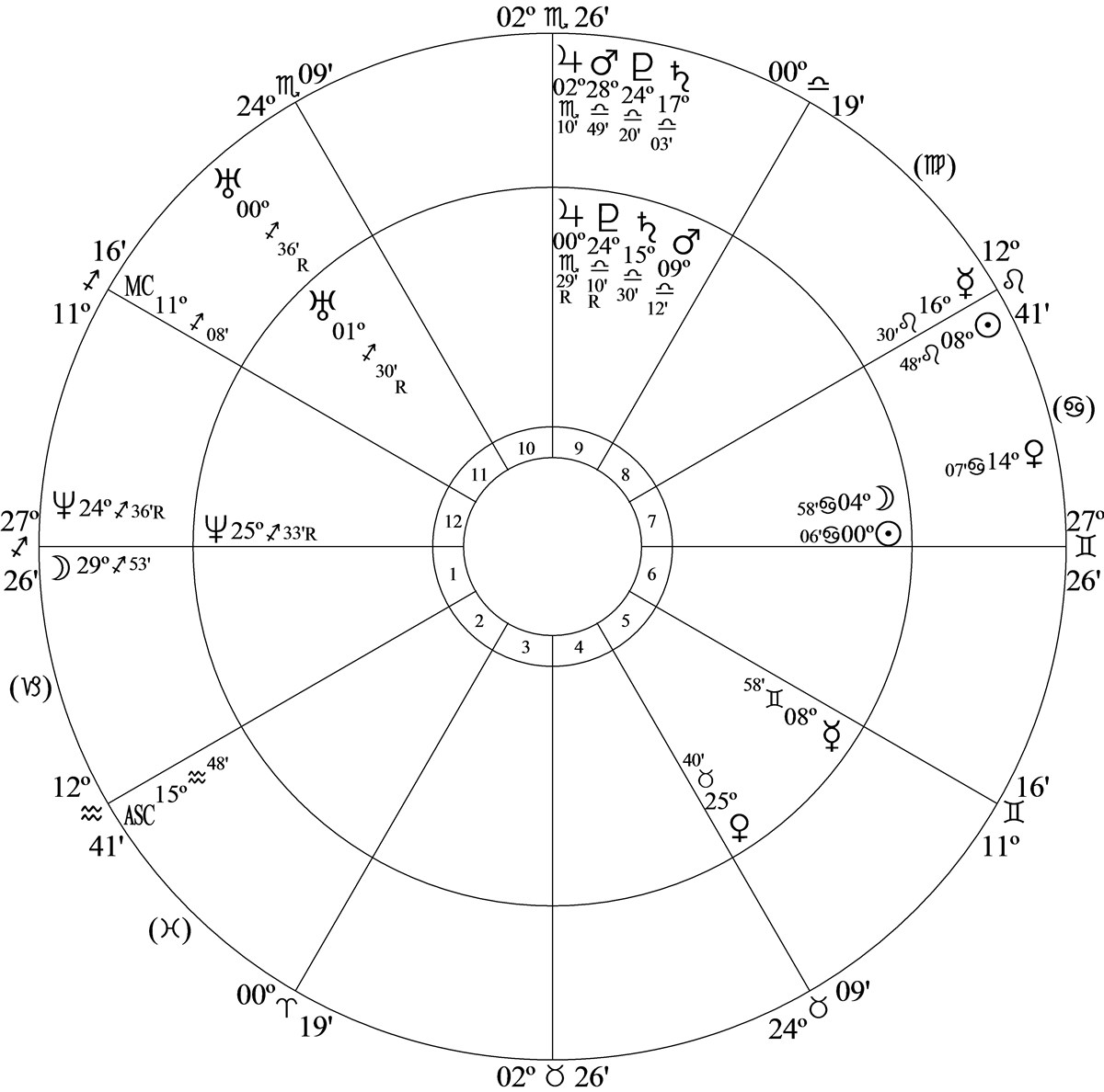 Birth chart Sun in the renunciation decanate of Virgo – Corona Borealis – is non-prominent and square (obstacle) Mars (conflict) – the cusp ruler of house 3 (his brother, William).