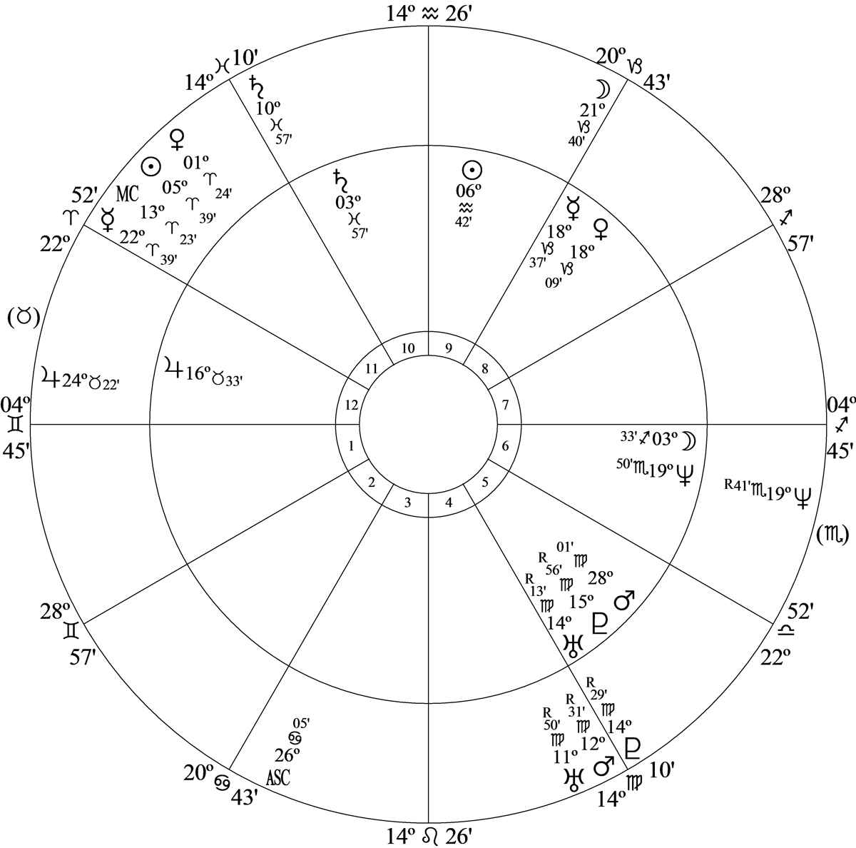 Progressed ascendant at 26 Cancer 05 in house 3 was sesquisquare progressed Saturn – the ruler of house 10 – at 10 Pisces 57; and progressed Mars – the intercepted ruler of house 6 – at 12 Virgo 31R was conjunction progressed Uranus – the cusp ruler of house 10 – at 11 Virgo 50R.