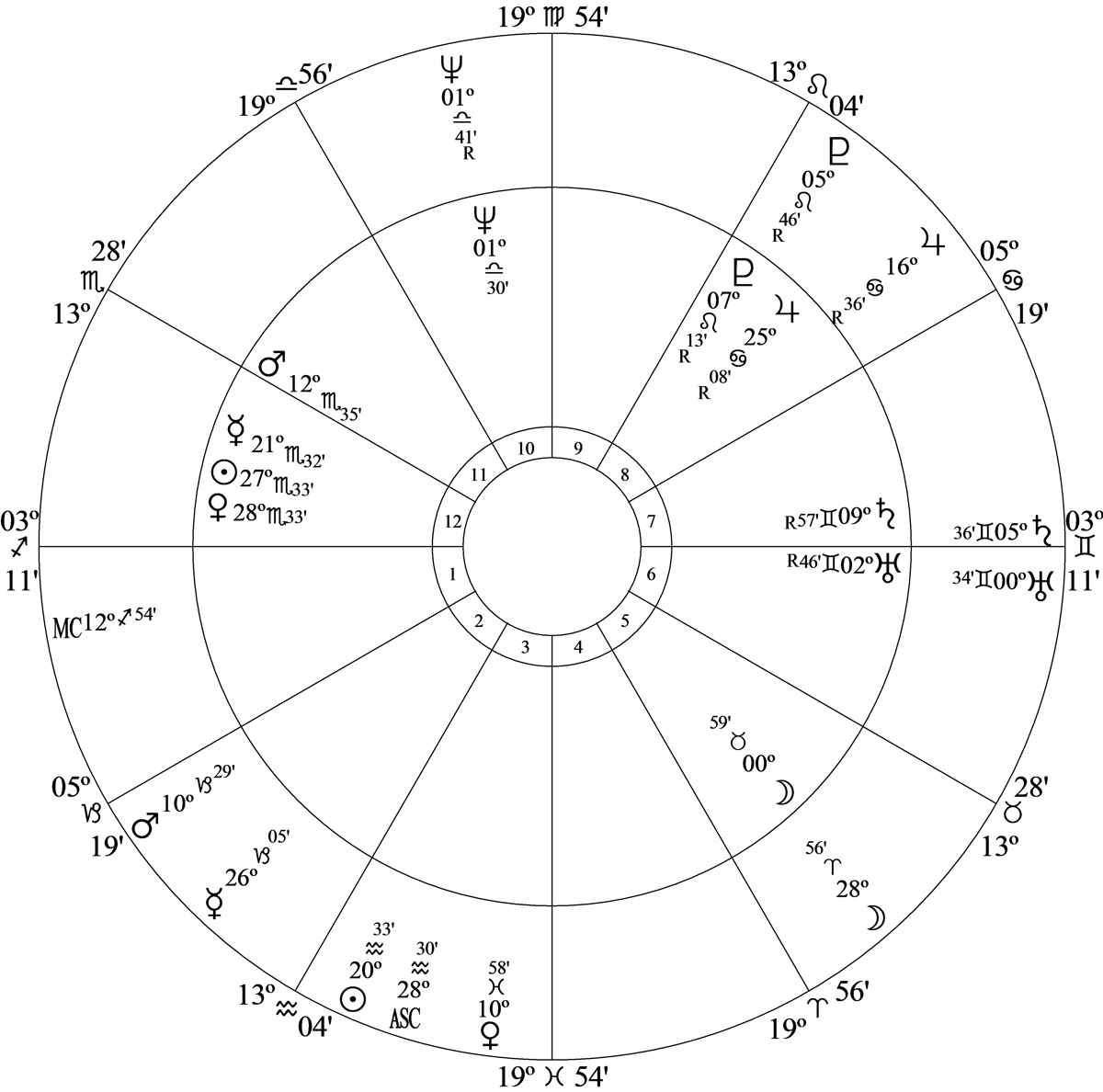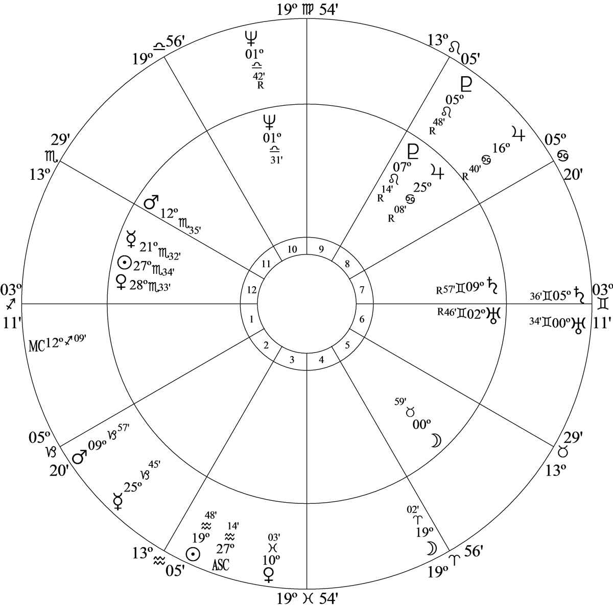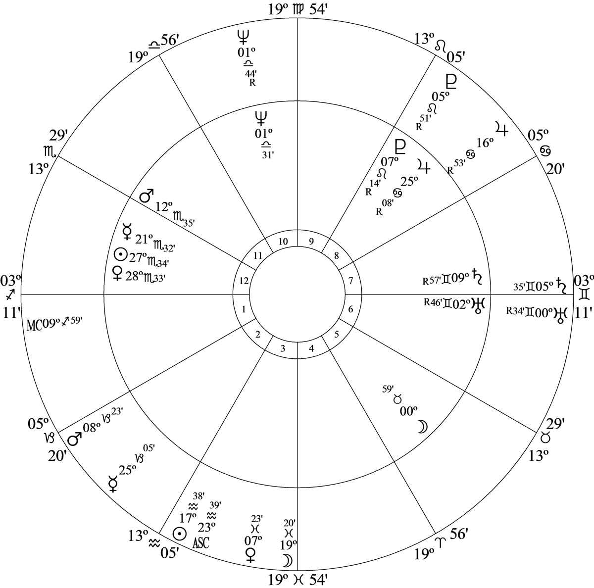 Progressed Moon at 19 Pisces 20 – the cusp ruler of house 8 in house 3 – was opposition* birth chart Midheaven at 19 Virgo 54 stimulating the progressed Midheaven-Saturn opposition.