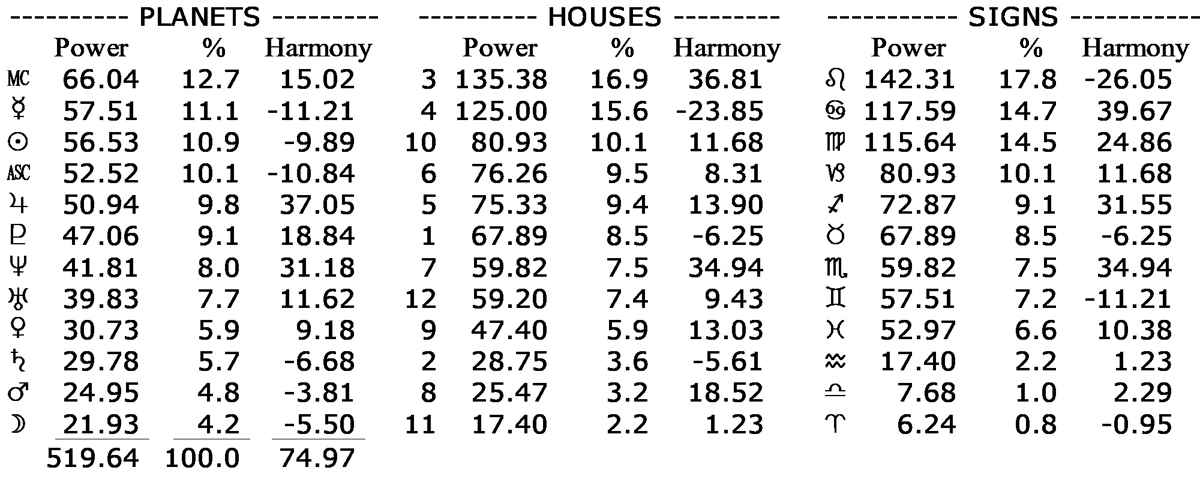 Her chart's astrodyne report