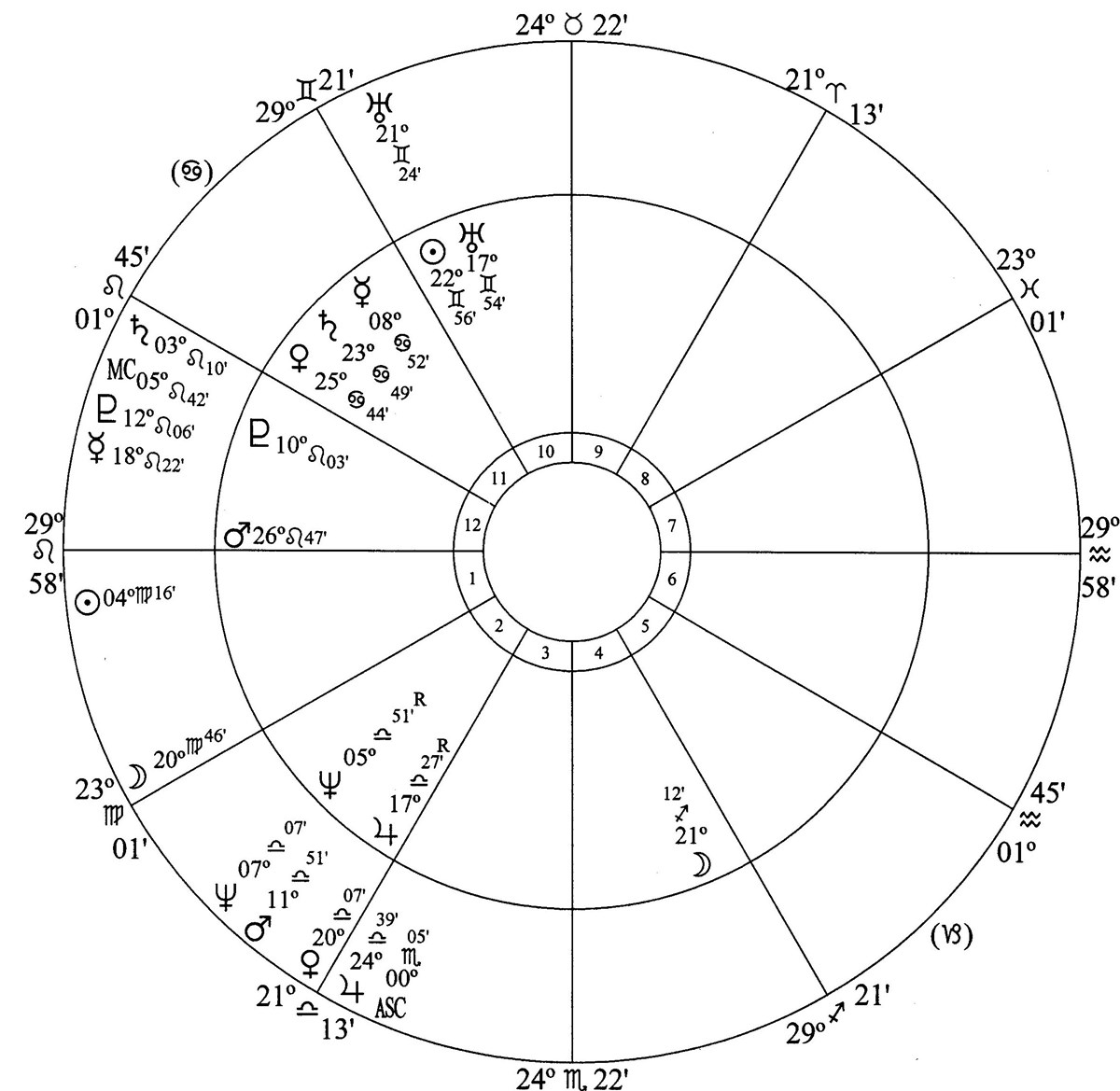 Progressed Mars at 11 Libra 51 in house 2 was semisquare birth chart Mars at 26 Leo 47 in house 12 and sextile progressed Pluto at 12 Leo 06 in house 12.