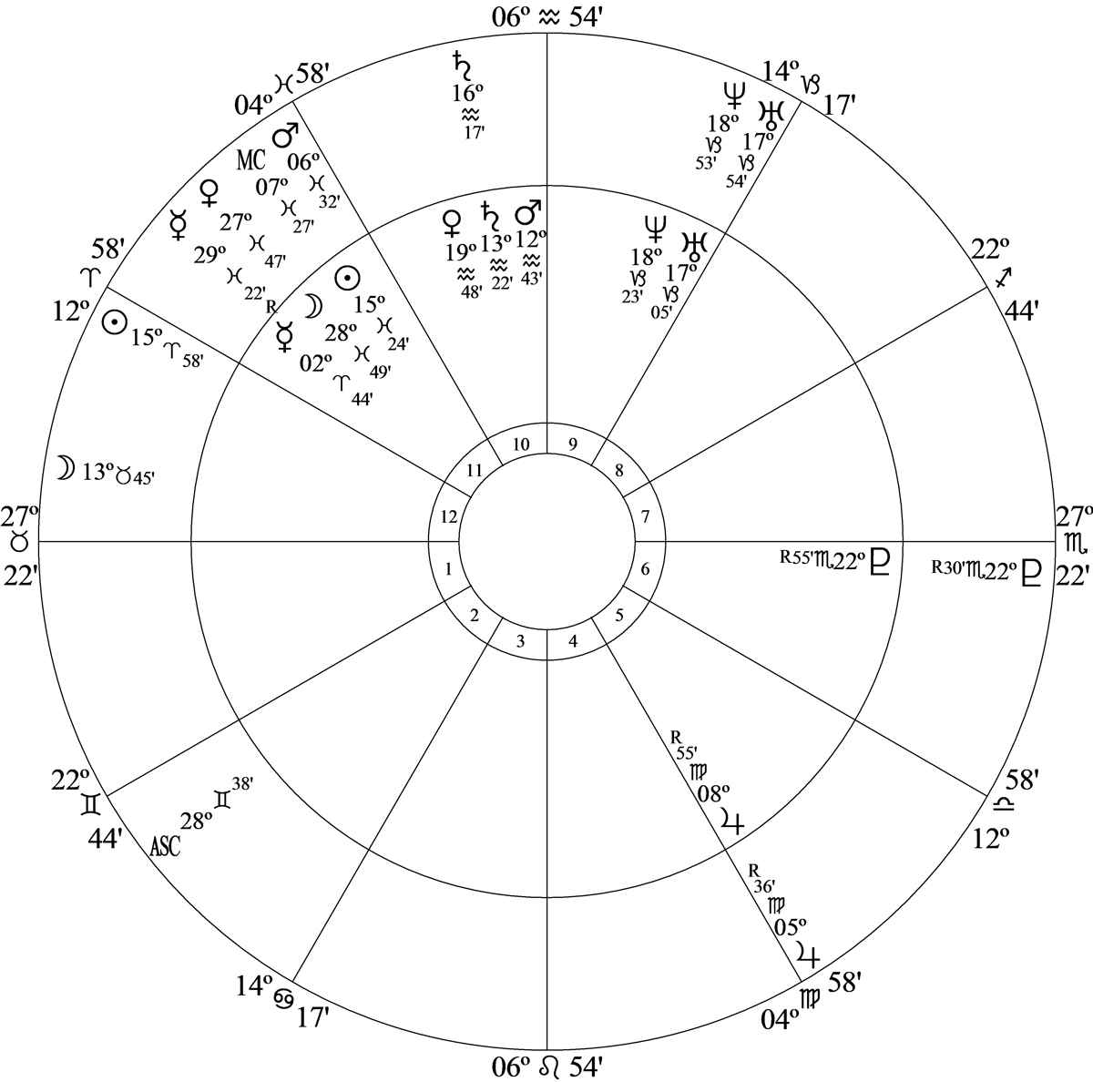 The event was timed by transit Mercury semisquare progressed Mars (house 7).