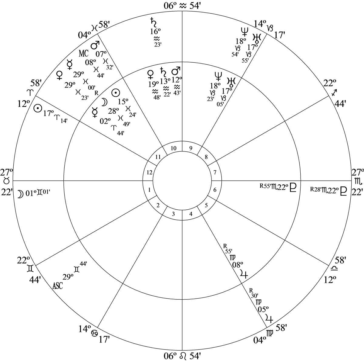 Progressed Mars – the cusp ruler of house 12 – at 7 Pisces 32 and 9S55 was semisextile birth chart Midheaven at 6 Aquarius 54 and parallel birth chart Jupiter at 9N30.