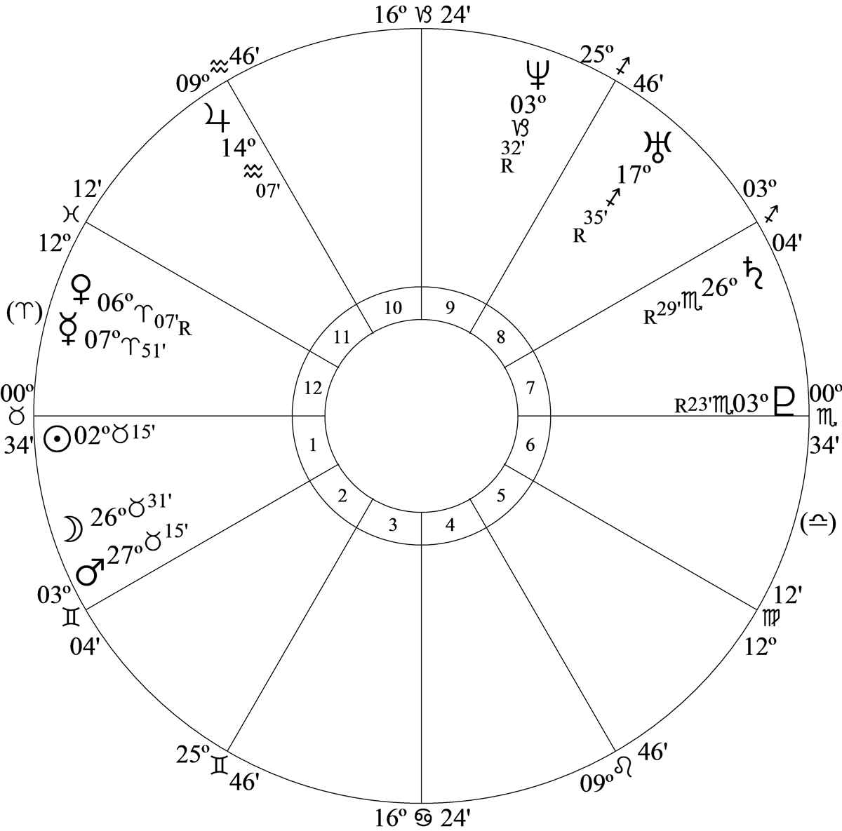 The high discord opposition aspects involving house 1 and house 7 depict a very painful and distressing conflict of interest as warring thought-cells work to separate his personal life and interests from his partners and the public.
