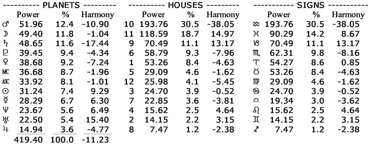 His chart’s astrodyne report