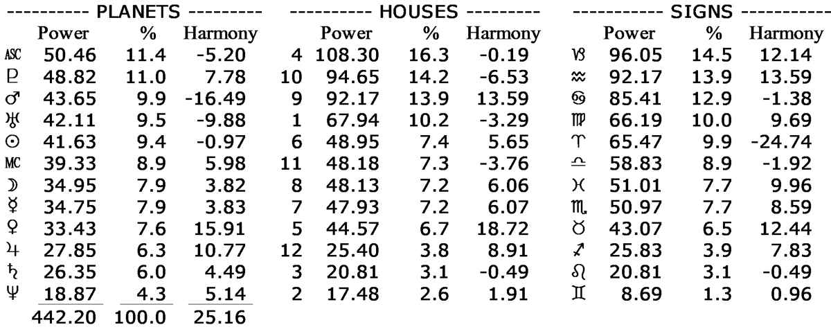 Pluto, Mars, Uranus and Sun are prominent with above average power.