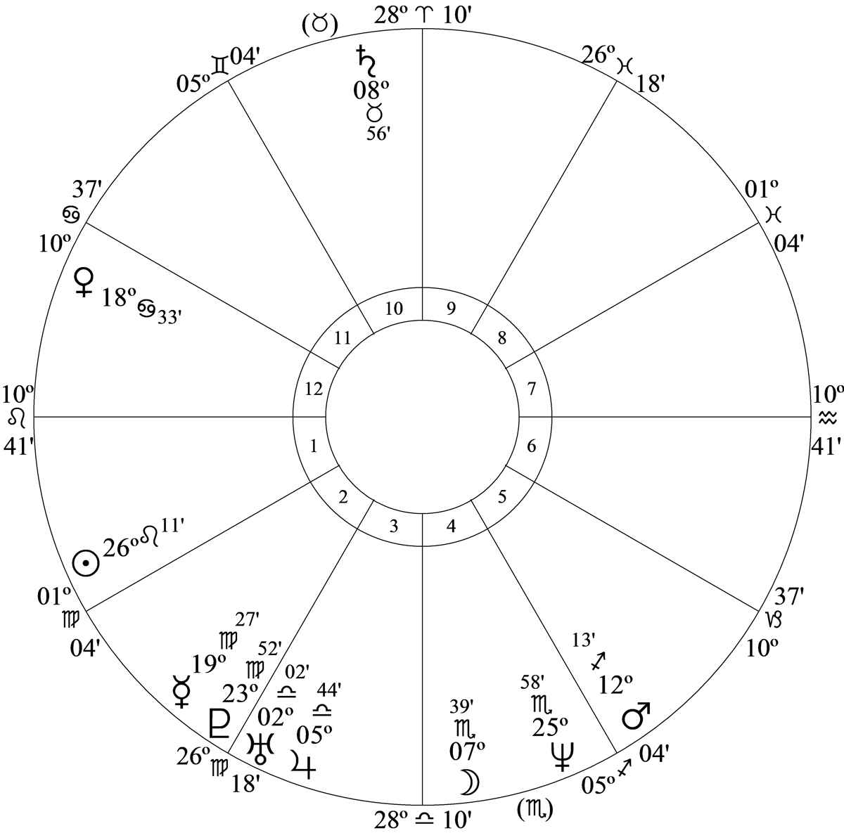 Dominant planet is Moon – his domestic urge, mentality, feelings and mental health – and it’s high in discord: worst quality is inconstancy; best is adaptability.