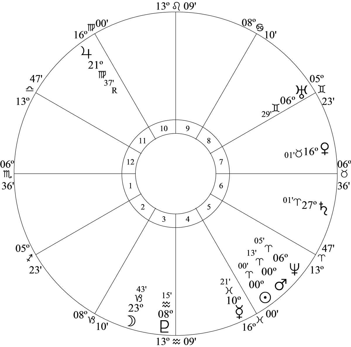 Progressed Jupiter at 16 Taurus 52R and 15S49 – the cusp co-ruler of house 10 in house 12 – is opposition birth chart Neptune and parallel progressed Neptune at 16 Scorpio 50 and 15S48 – the cusp ruler of house 10 in house 6; and trine progressed Pluto at 16 Virgo 19R.