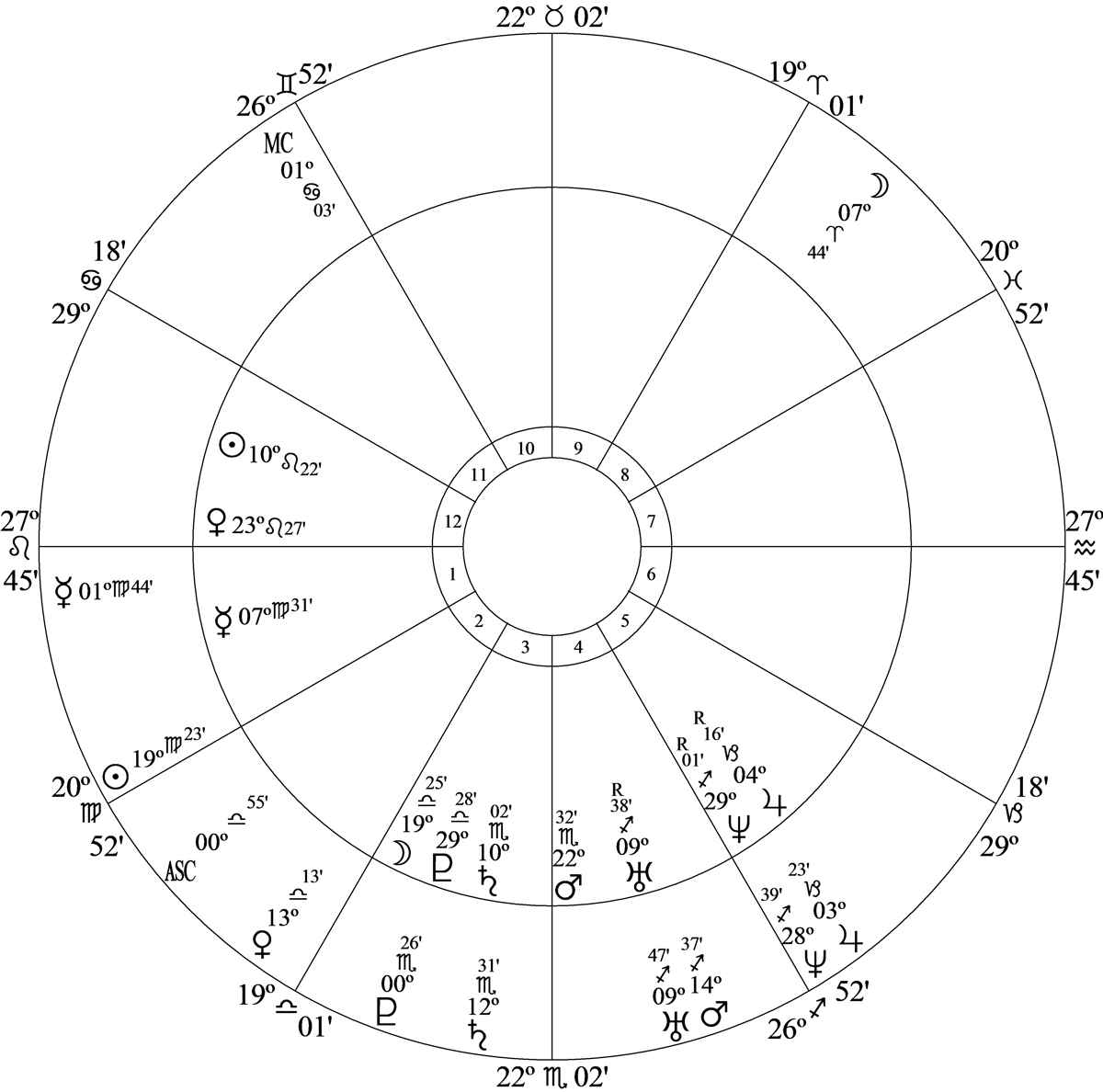 Progressed Sun at 19 Virgo 23 and 4N12 in house 1 was semisextile birth chart Moon at 19 Libra 25 in house 3, parallel progressed Venus at 4S29 – the cusp ruler of house 10 in house 2, and parallel birth chart Pluto at 4N23 in house 3.