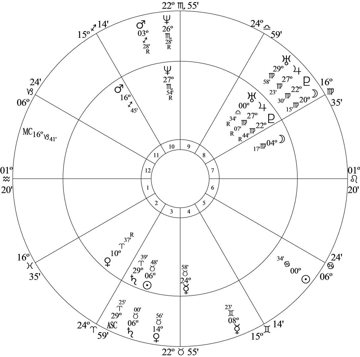 Mercury dominates from house 4. It’s square Moon, trine Jupiter, trine Uranus, opposition Neptune and trine Pluto. With Mercury square (obstacle) Moon in house 7 he’s never married.