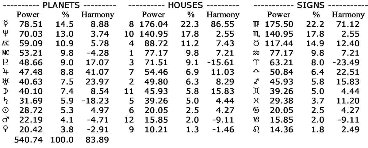 His chart’s astrodyne report