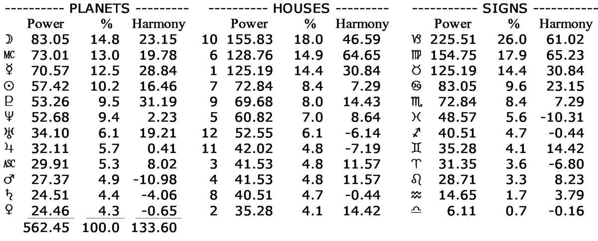 His chart’s astrodyne report