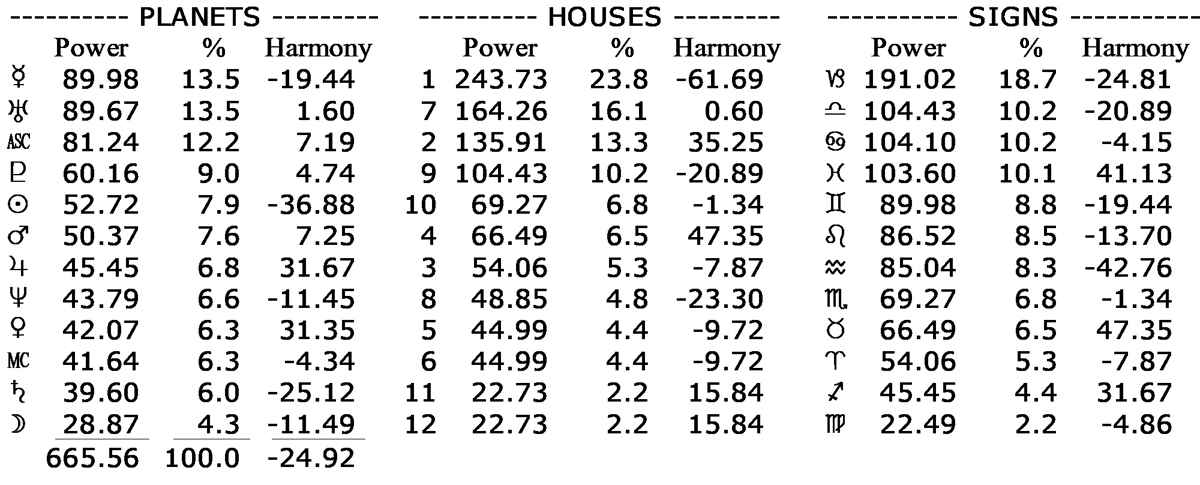 His chart’s astrodyne report