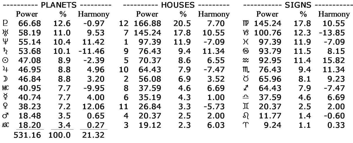His chart's astrodyne report