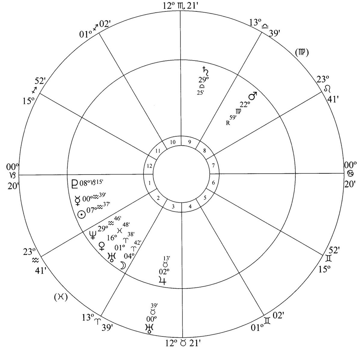 Mars and Pluto – the cusp rulers of house 6 – are in house 8 (death). Mars there forecasts violent deaths and the deaths of military personnel.