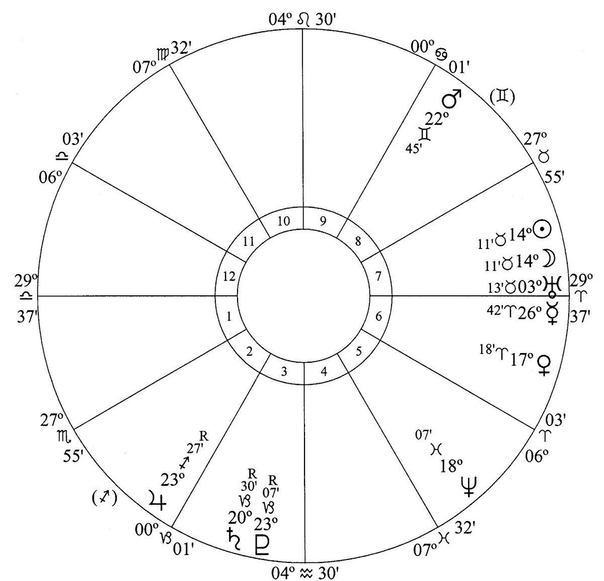 The Sun-Moon conjunction is trine Jupiter, trine Neptune and opposition Pluto.