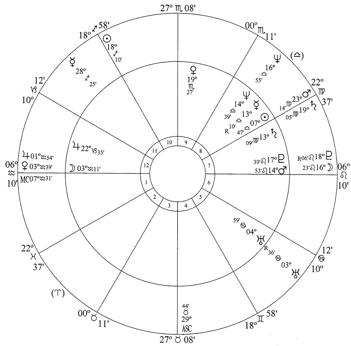 China’s prosperity has been fuelled by capital investment, market access and technology but China is still a developing country. With houses 7 and 8 dominating its chart China is utterly dependent on foreign money and foreign markets for its prosperity. Domestic consumption (houses 1 and 2) will always remain poor.