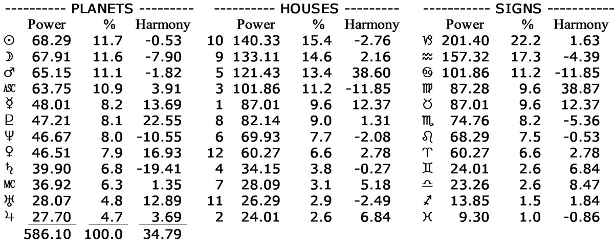 His chart’s astrodyne report