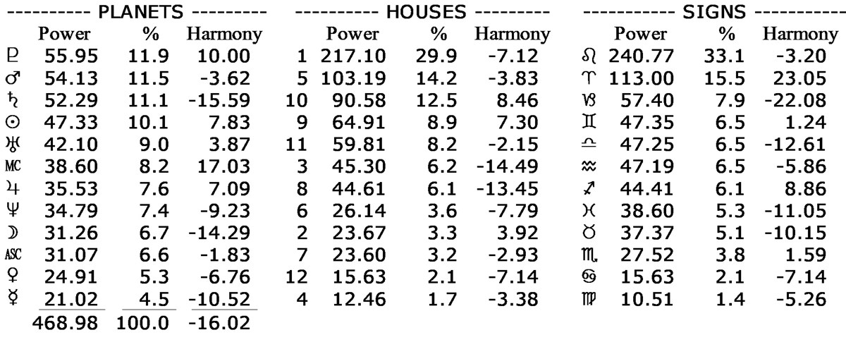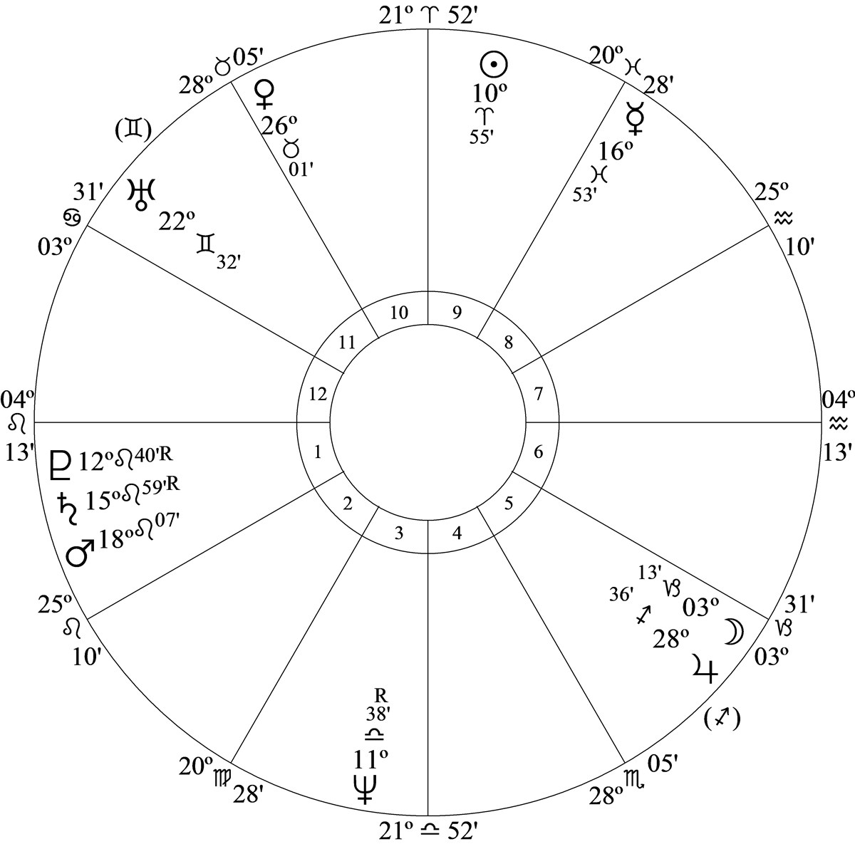 With this decanate profile his character and life are defined by exaltation, organization and rulership – a persistent ambition for power, heightened mental and emotional states, politics, business, conciliation, coordination, management, administration and a powerful love nature.