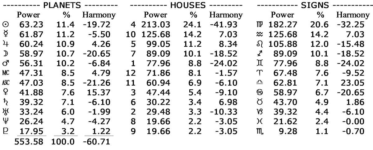 His chart’s astrodyne report