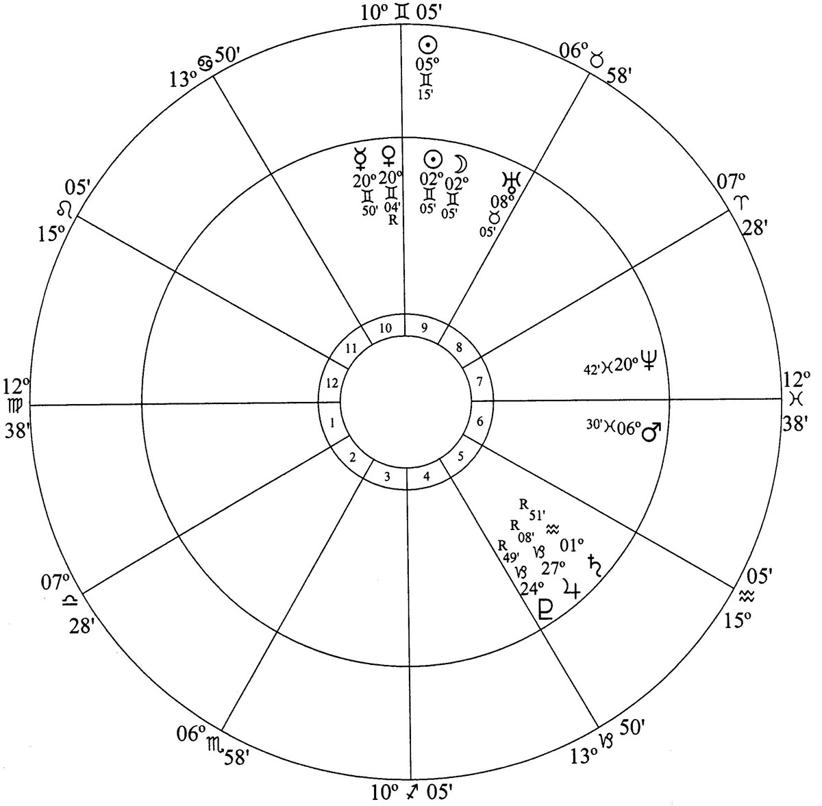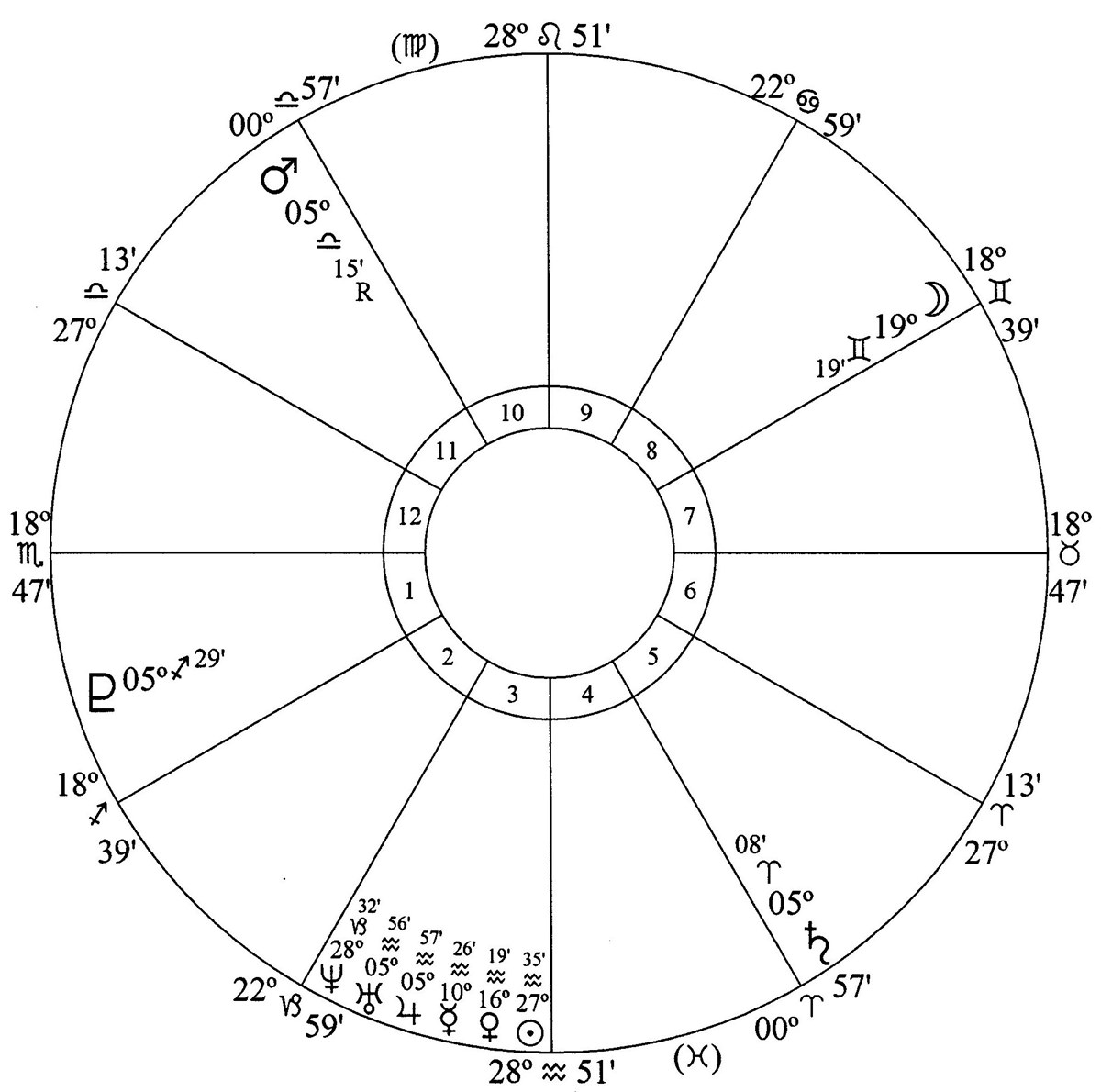 Mars – the planet of violence and police – is conjunction Neptune – the planet of tear gas and peaceful protests – in house 8 (death). The Moon – planet of the everyday people – is conjunction Mars and Neptune and Jupiter, Saturn and Pluto are in house 6. Mars is cusp ruler of house 9 and Uranus is in house 9.