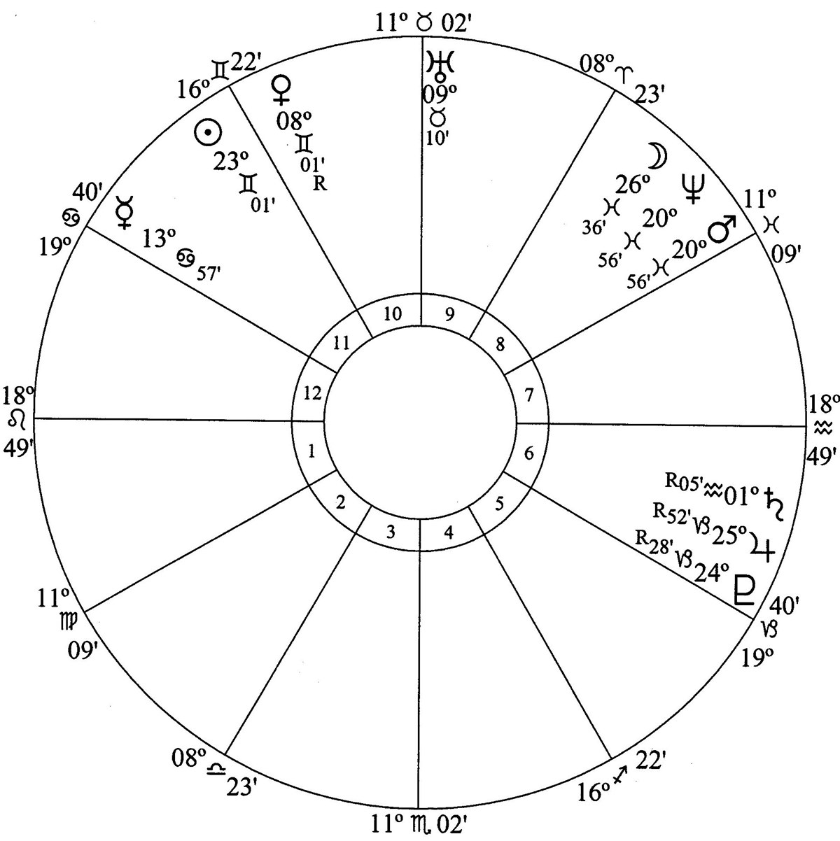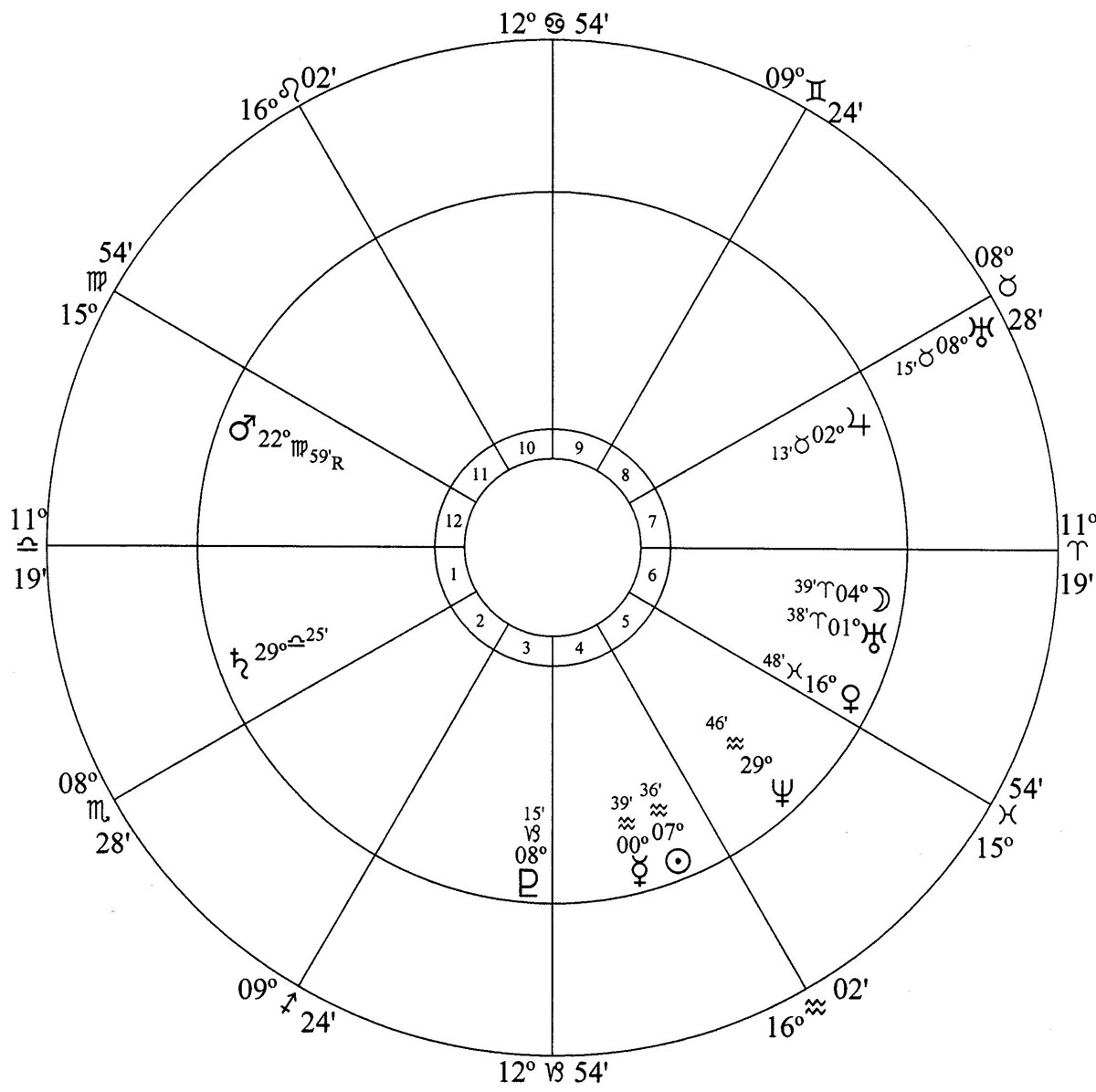 Sun is in house 4. Mars and Pluto rule the people (house 1) and Uranus is in house 6.
