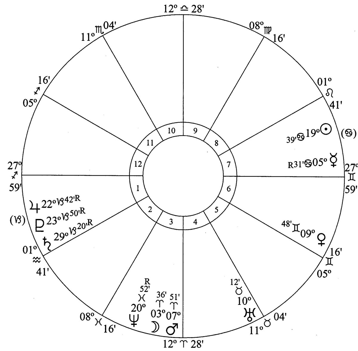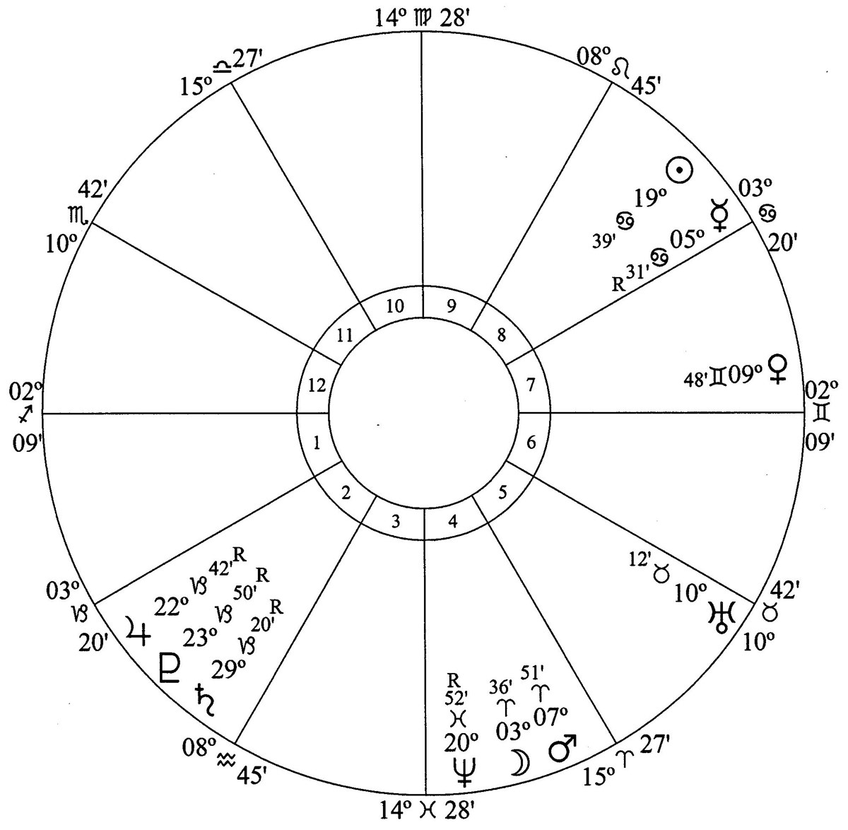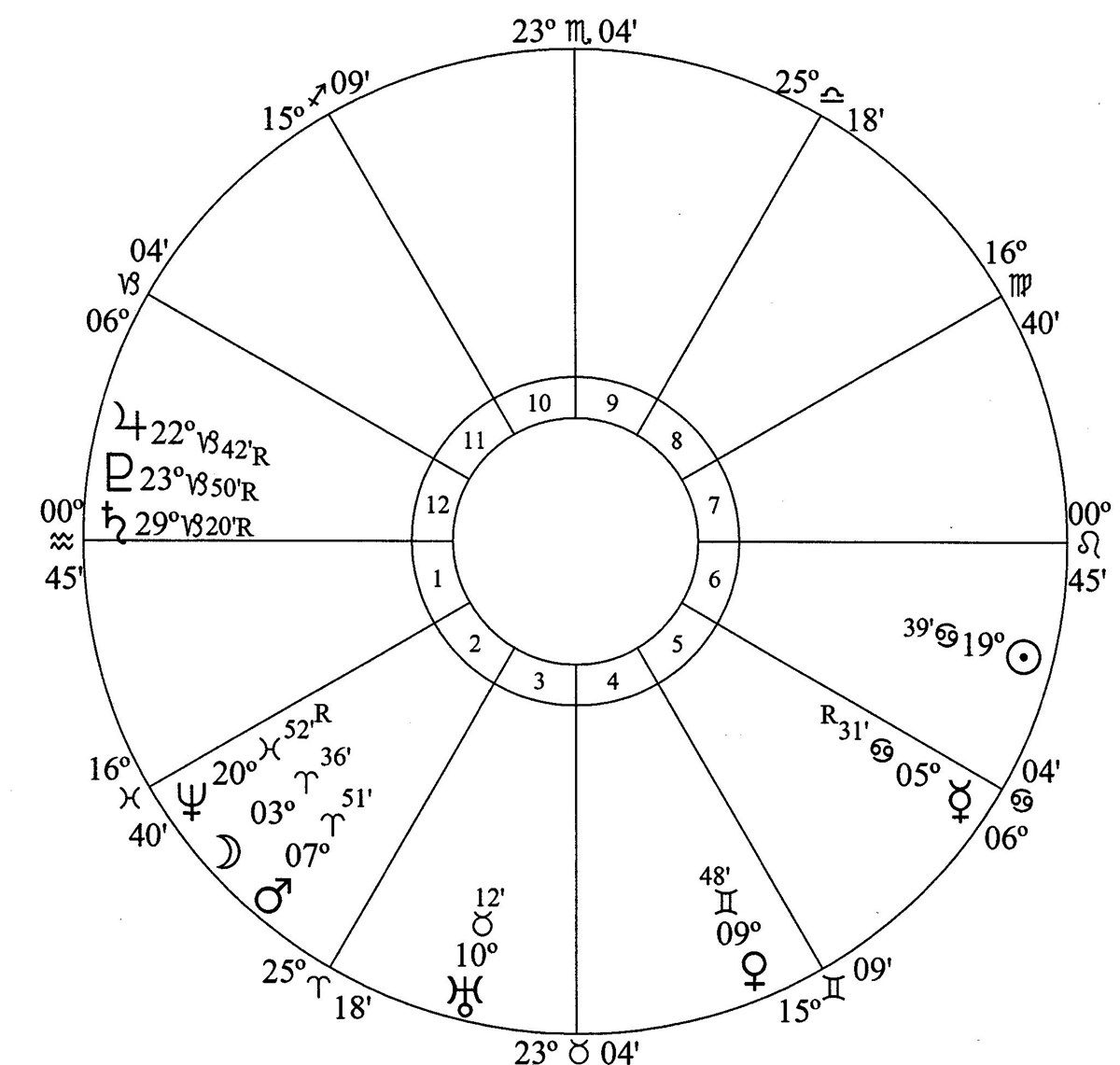 Jupiter, Saturn and Pluto are in house 12 (hospitals, detention centers, spying, subversive activity and crime).