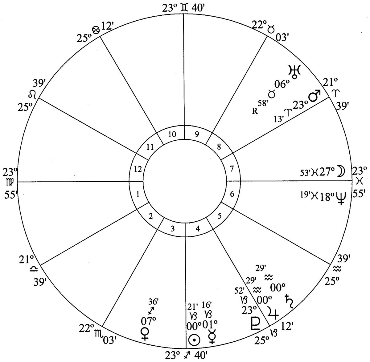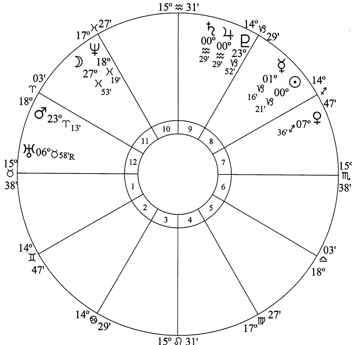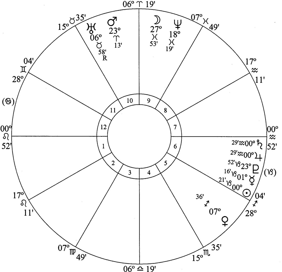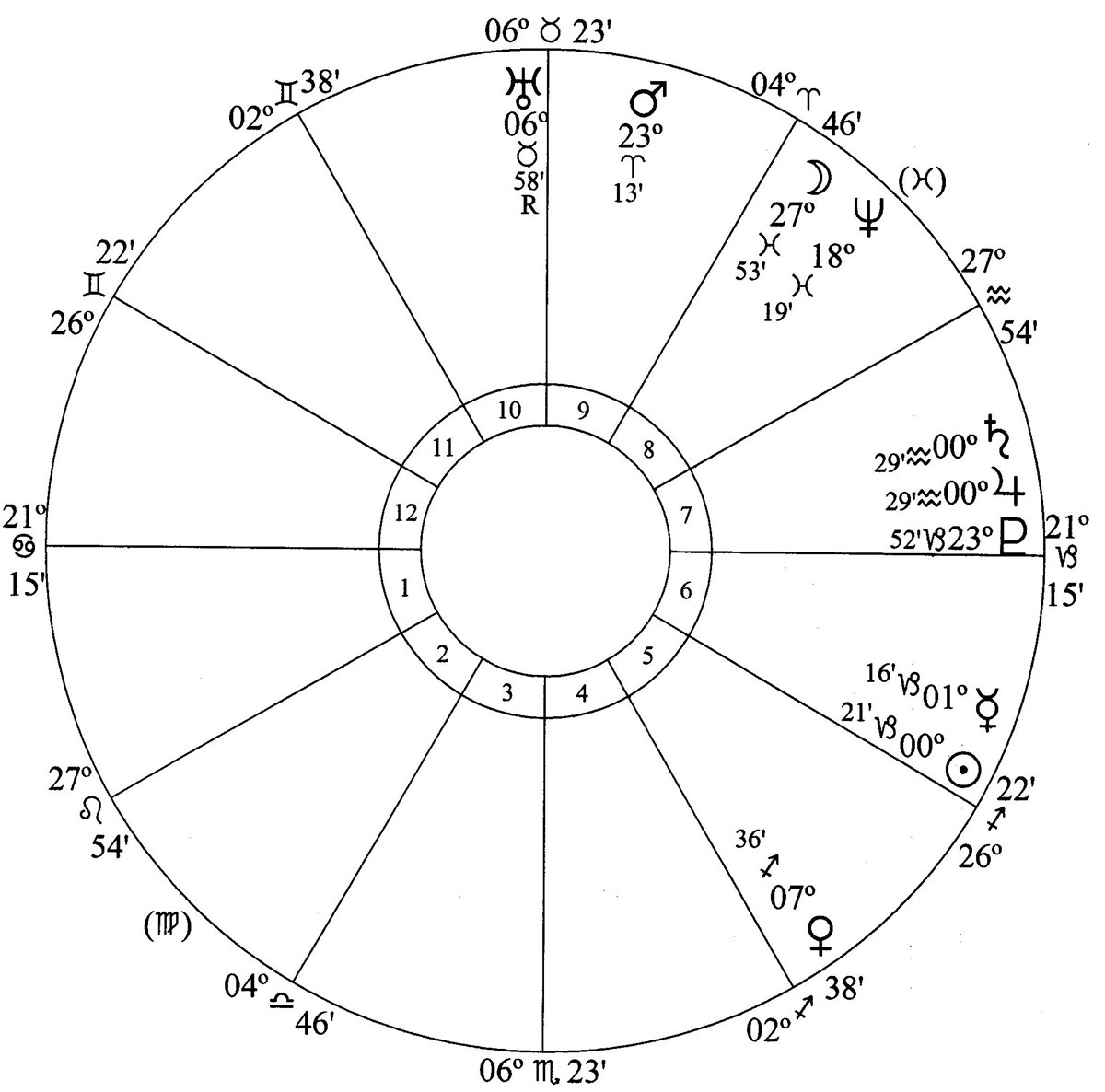 Jupiter is cusp ruler of house 10 (the government and business) and Saturn is cusp ruler of house 11 and co-ruler of house 12 (hospitals and prisons).